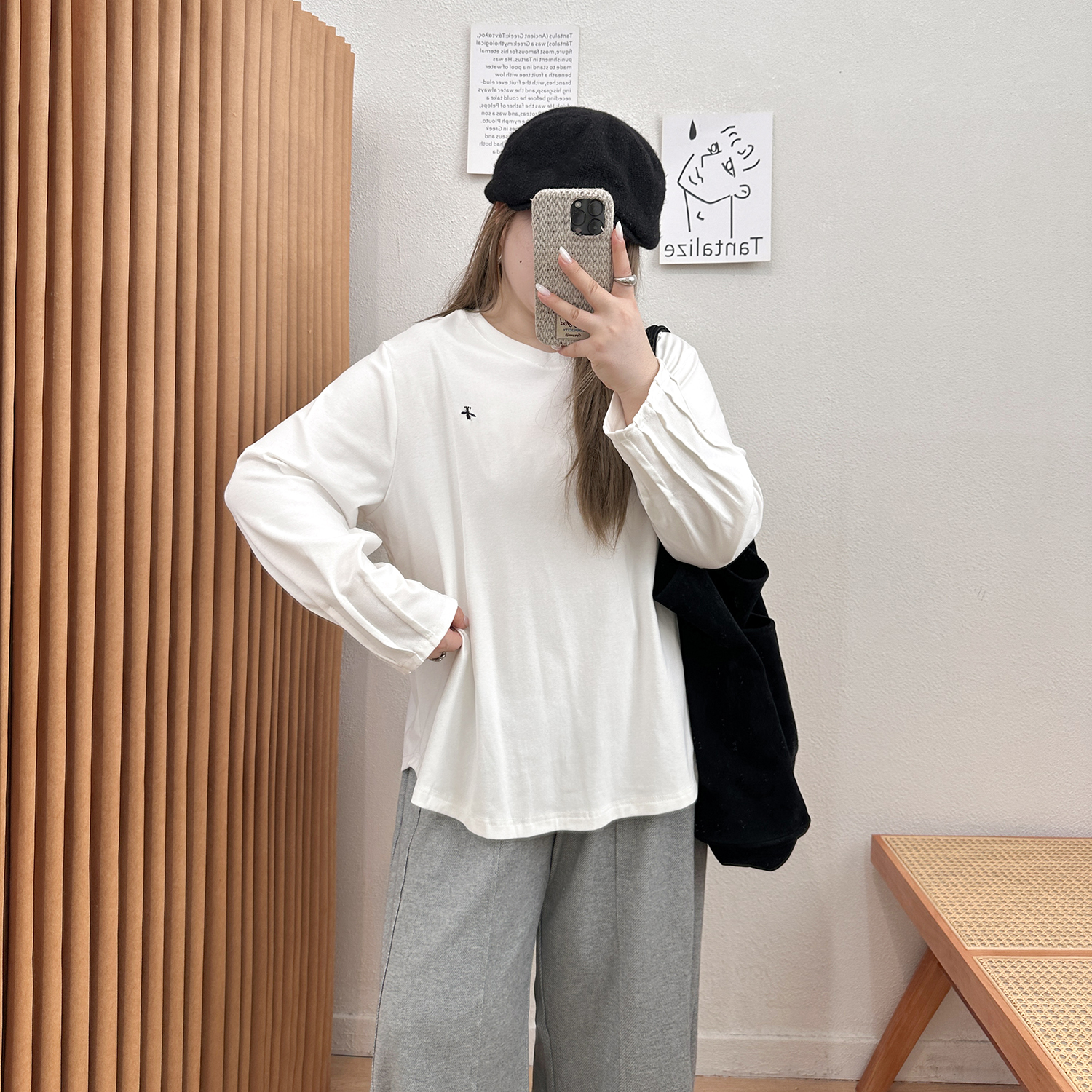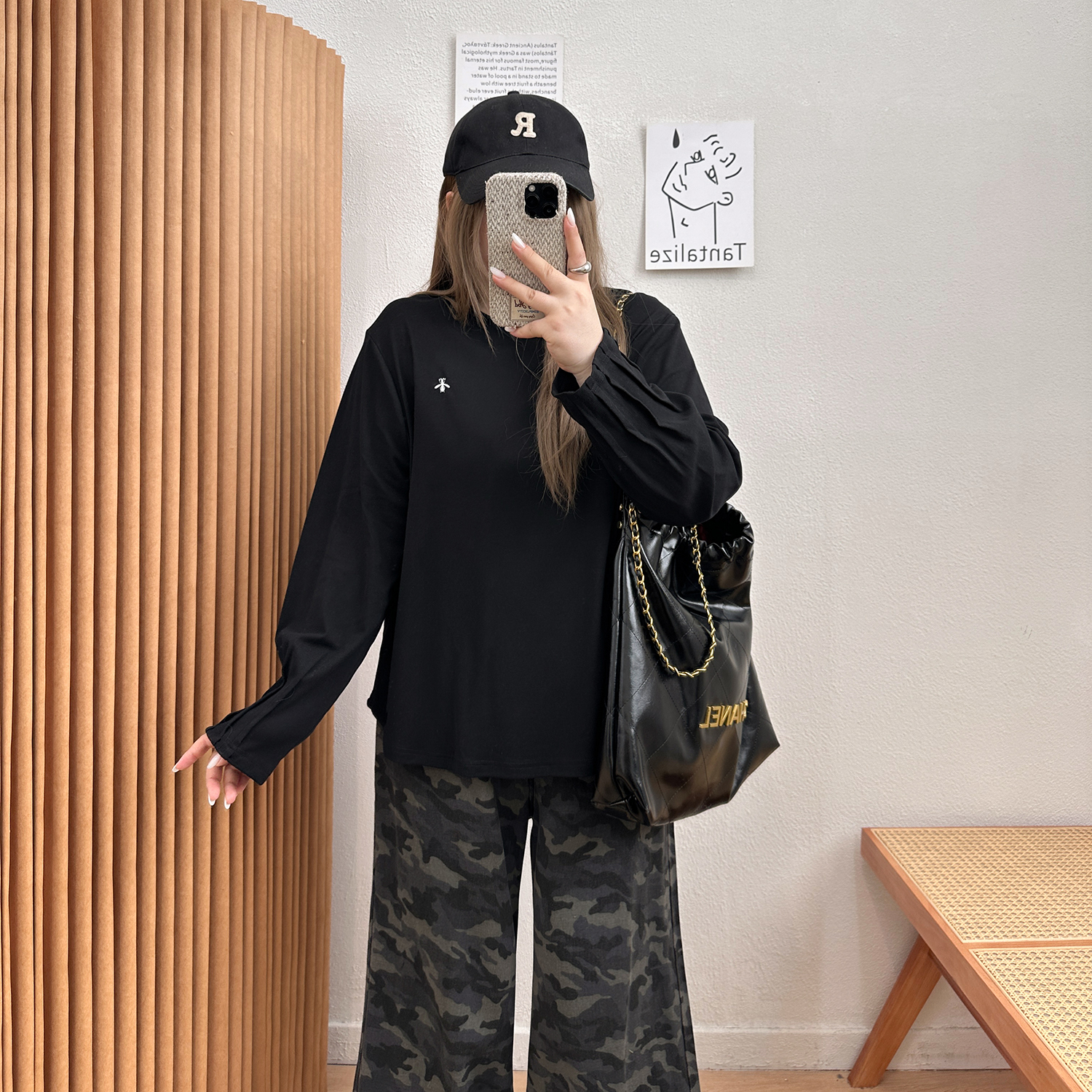 外贸出口清仓捡漏100%纯棉长袖气质t恤女2025秋衣打底衫洋气上衣