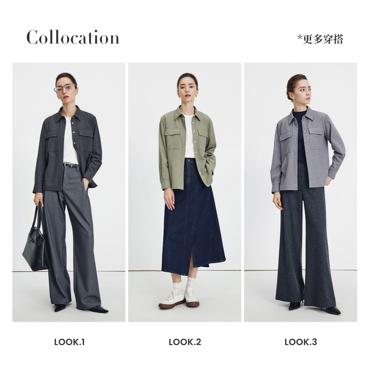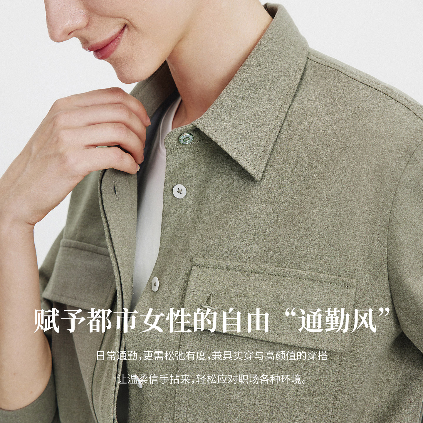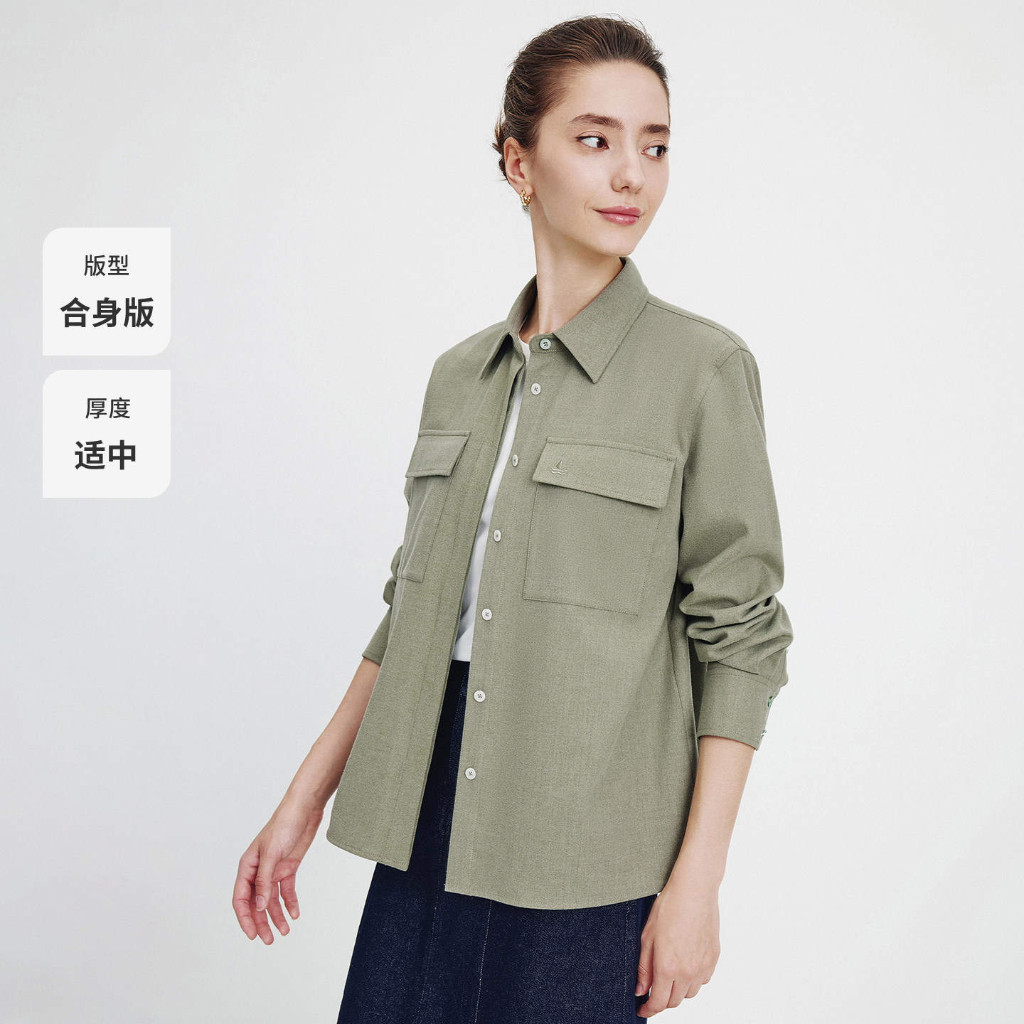 天猫Navigare意大利小帆船春季新款磨毛长袖衬衫女士休闲工装衬衣外套