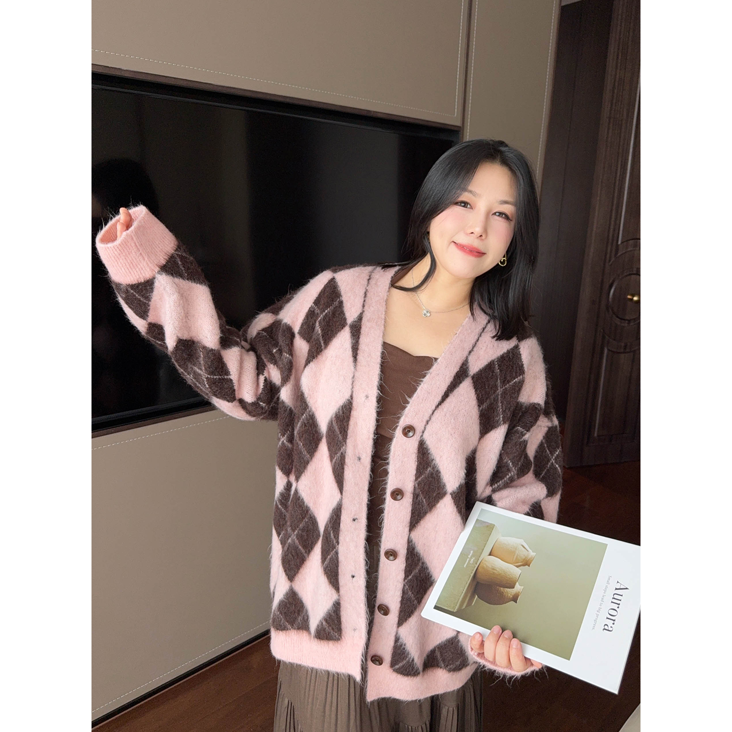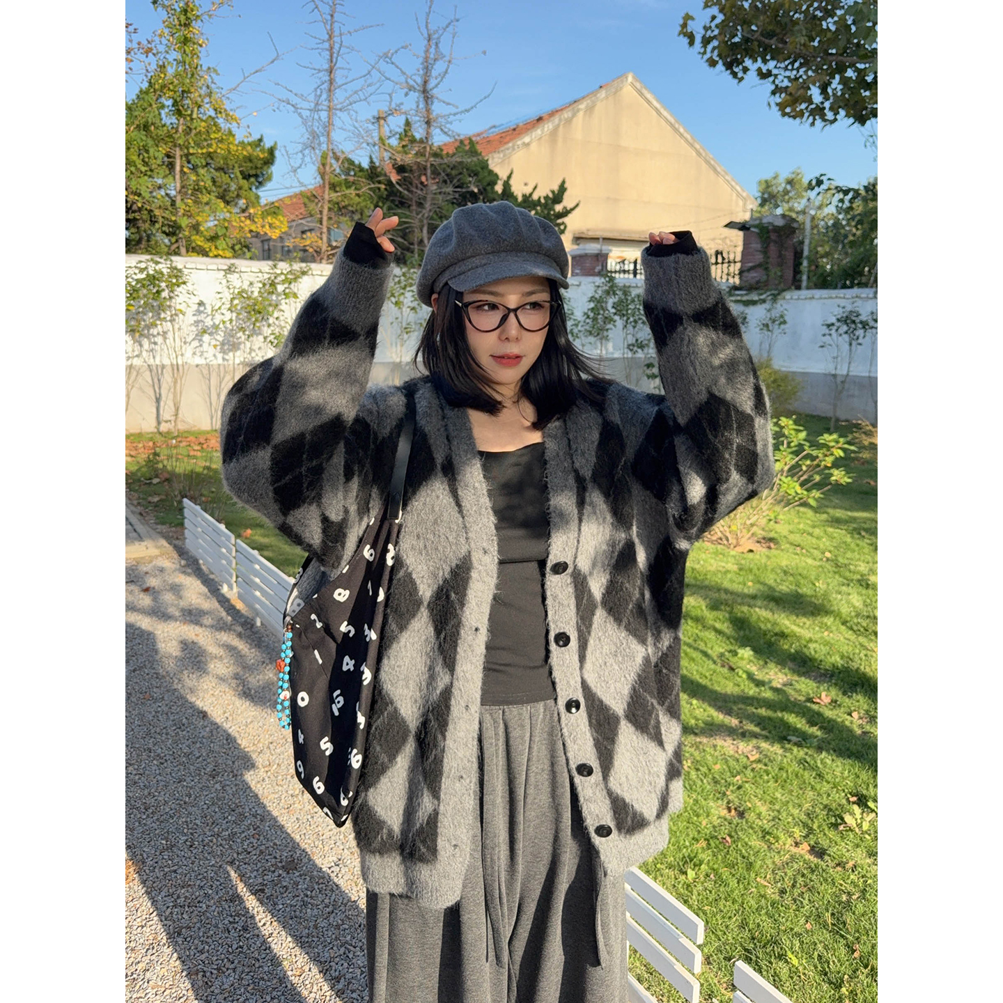 宛宛大码微胖复古千禧风宽松长袖T恤女秋季新款胖MM纯棉上衣内搭