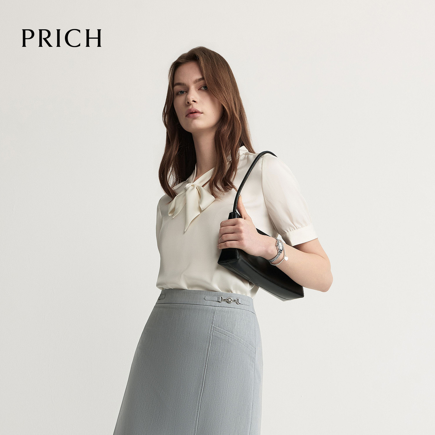 PRICH简约飘带领光泽气质感短袖衬衫,专为都市女性打造,融合优雅与实用。采用柔滑垂坠面料,触感细腻,光泽自然,轻盈透气,夏日穿着舒适自在。经典飘带领设计,修饰颈部线条,增添知性气质,轻松提升整体造型感。简约利落的剪裁,贴合身形又不失宽松感,适合多种场合穿搭。无论是通勤办公,还是休闲约会,都能展现从容自信的女性魅力。百搭色系,轻松搭配半裙或西裤,打造干练又不失柔美的职场形象。PRICH以细节诠释品质,是夏季衣橱不可或缺的时尚单品。