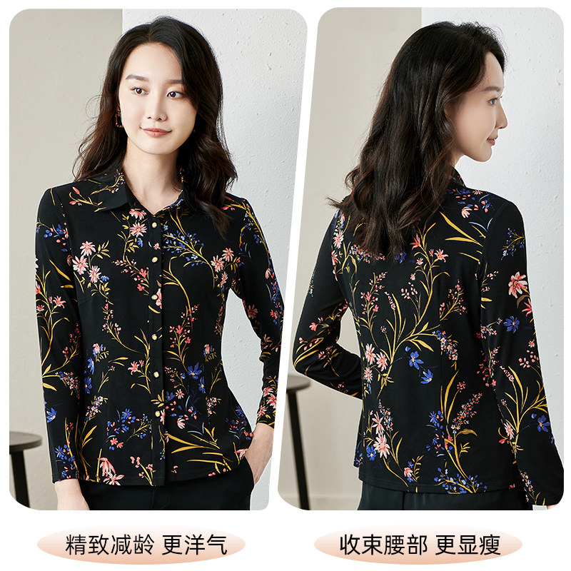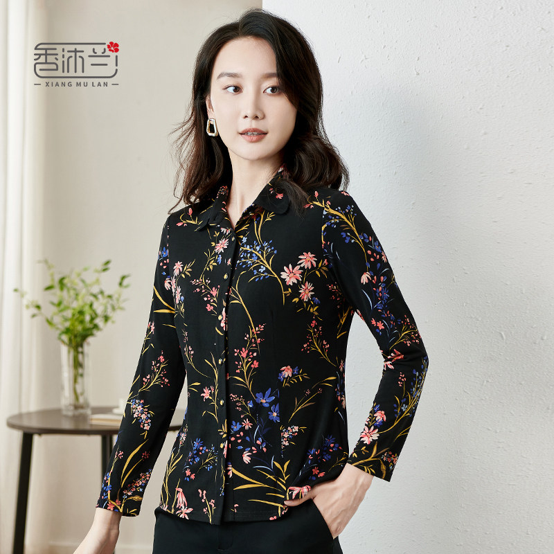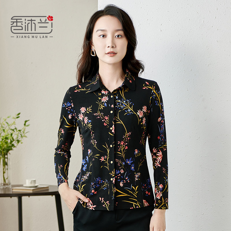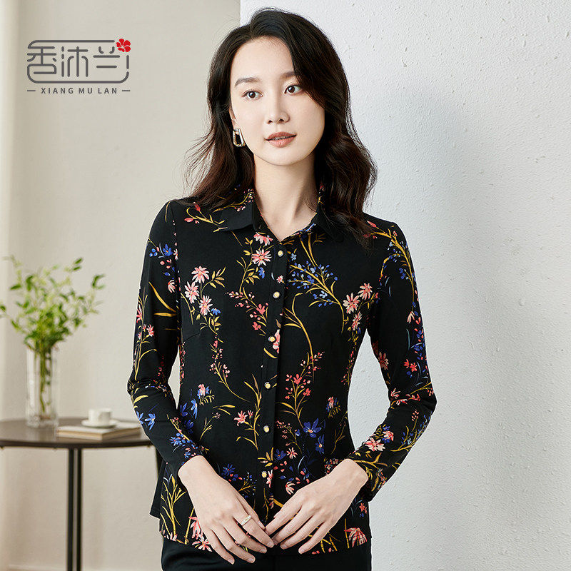 天猫香沐兰2026春季新款印花长袖衬衫中老年妈妈装修身显瘦大码衬衣女