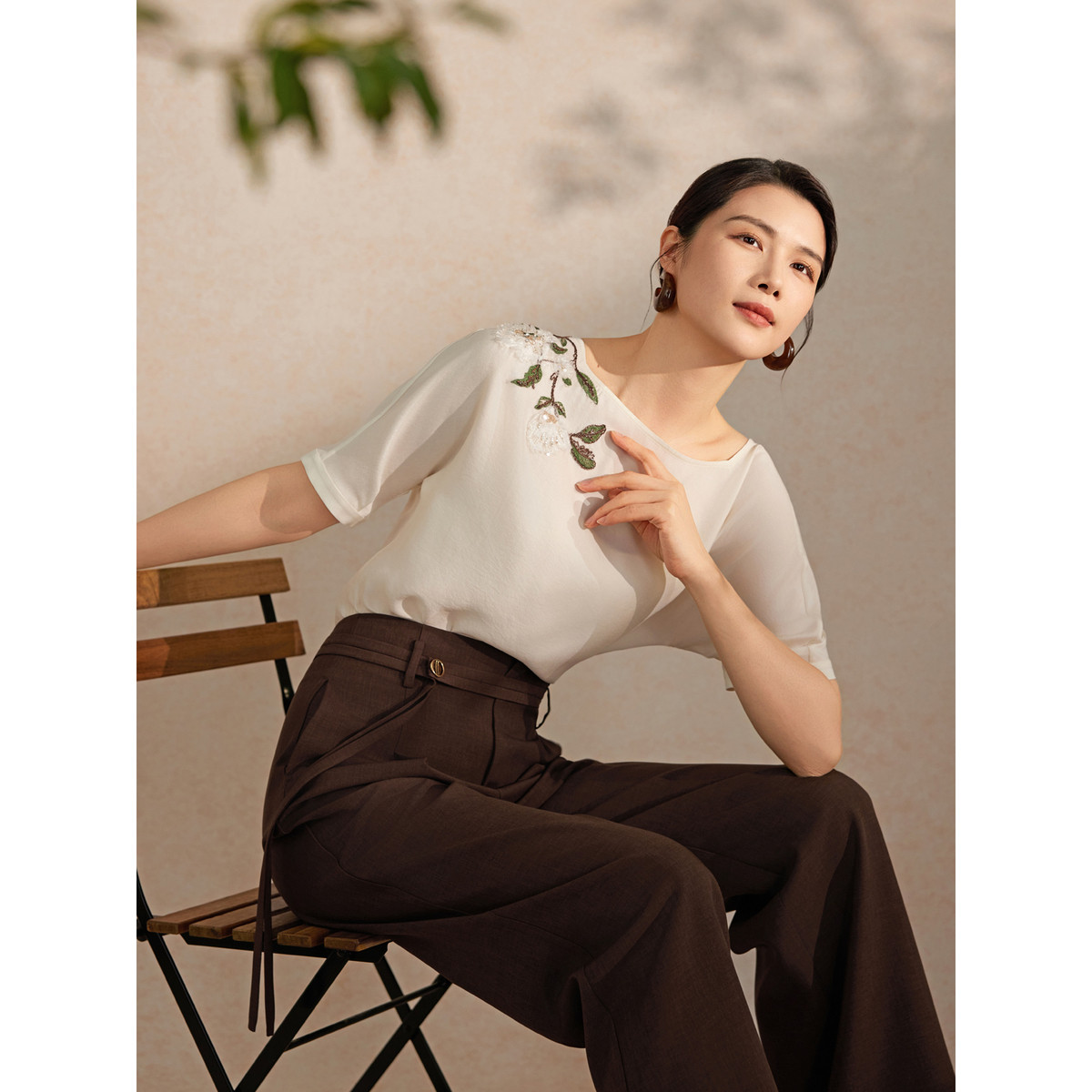 粉蓝衣橱2026夏装新款“东方雅韵”光泽短上衣,融合现代剪裁与传统美学,展现东方女性温婉与自信。采用高品质垂感面料,轻盈透气,触感柔滑,赋予穿着者舒适自在的体验。衣身点缀精致纱绣工艺,细腻勾勒花卉图案,立体生动,彰显匠心独运。微光泽质感在阳光下流转,低调中透显高级感。短款设计优化身材比例,搭配高腰下装尽显优雅气质。无论是日常通勤还是休闲聚会,这款短袖衬衫都能轻松驾驭,诠释东方雅致与现代时尚的完美融合,是夏日衣橱不可或缺的亮点单品。