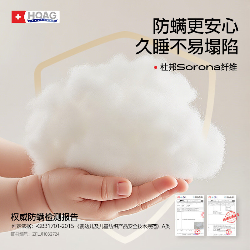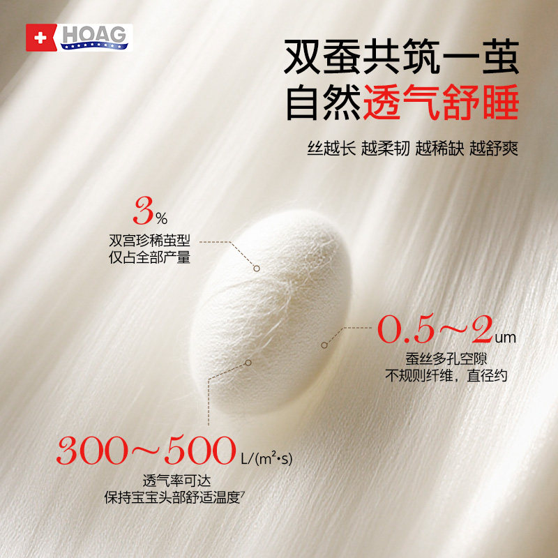天猫霍格Hoag儿童蚕丝枕头6个月到6岁以上婴儿宝宝四季通用专用护脊枕