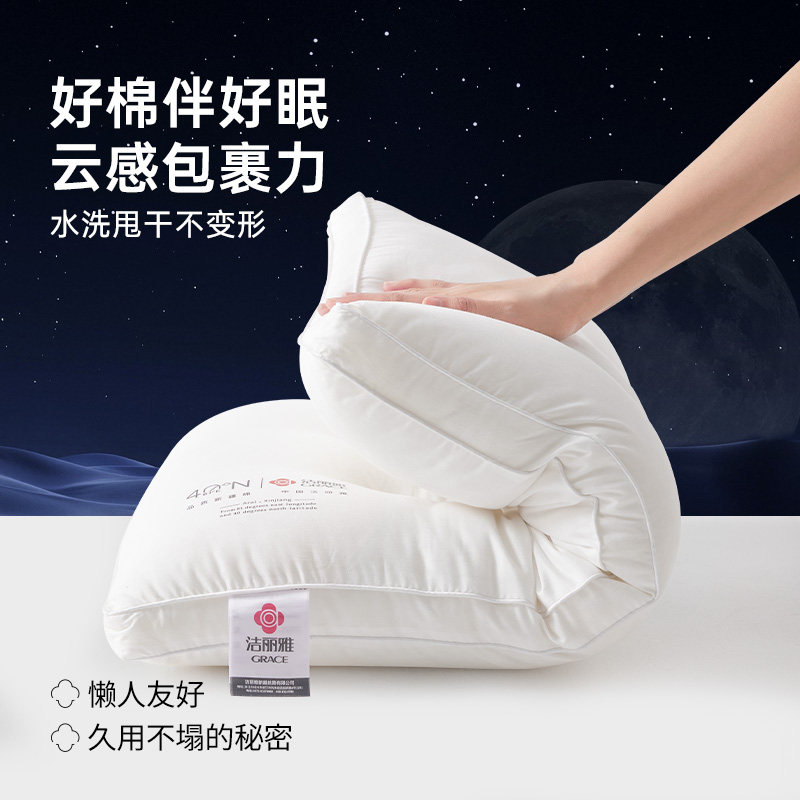 天猫洁丽雅纯棉枕头枕芯成人护颈枕低枕一对装家用侧睡枕头宿舍