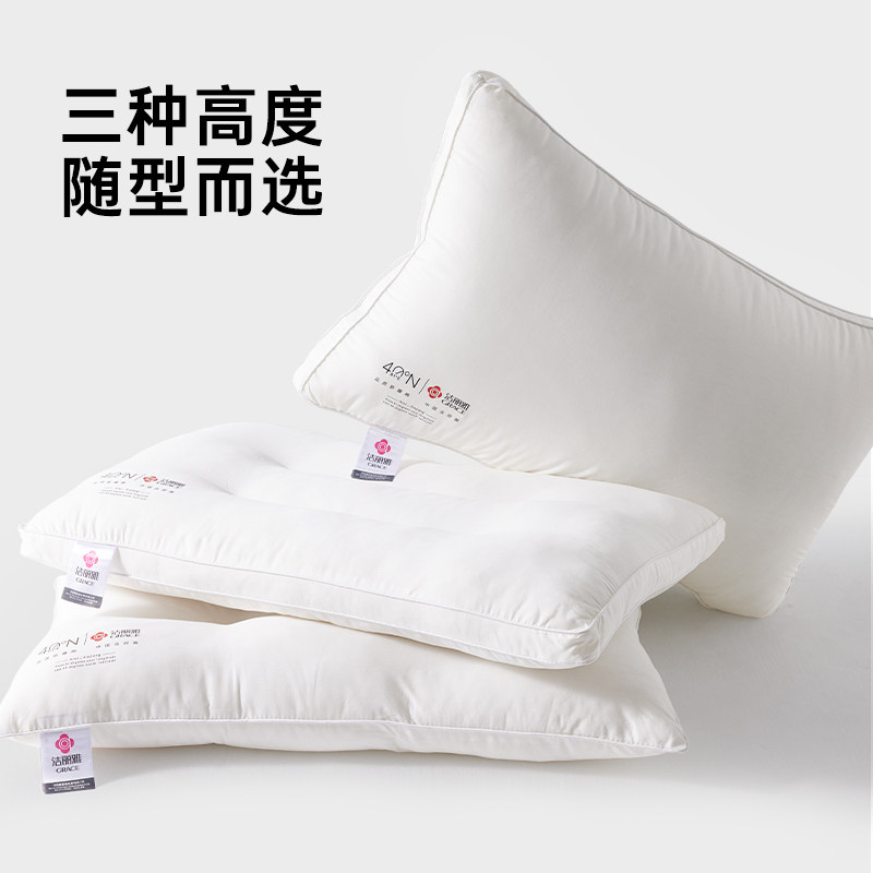 天瑞吉枕头五星级酒店羽绒枕芯鹅绒鹅毛低枕万豪床品颈椎成人大高端