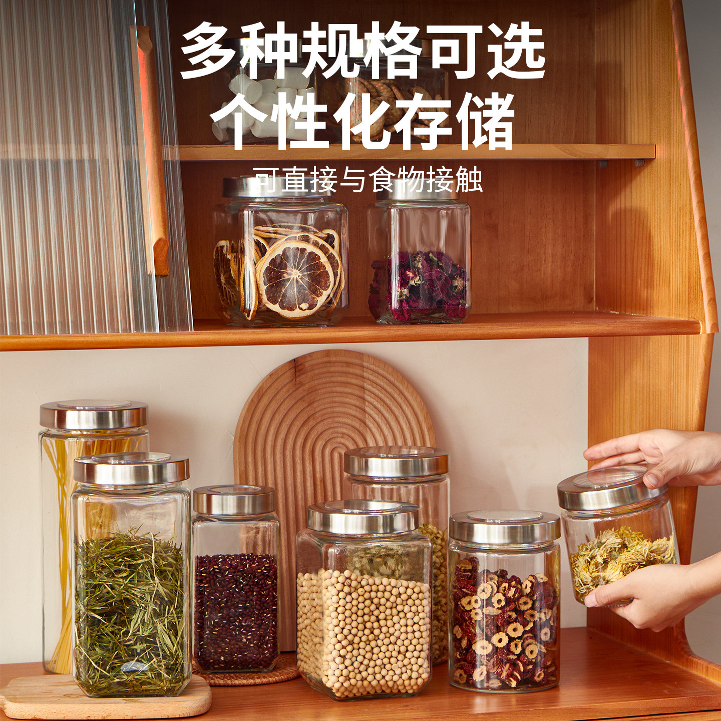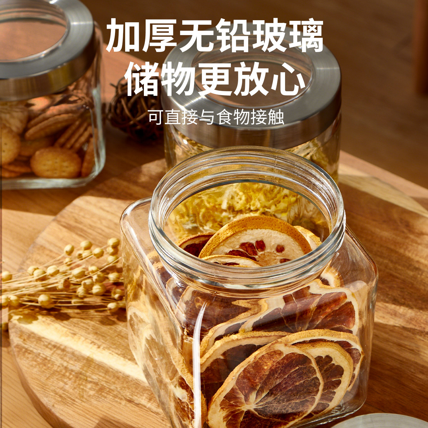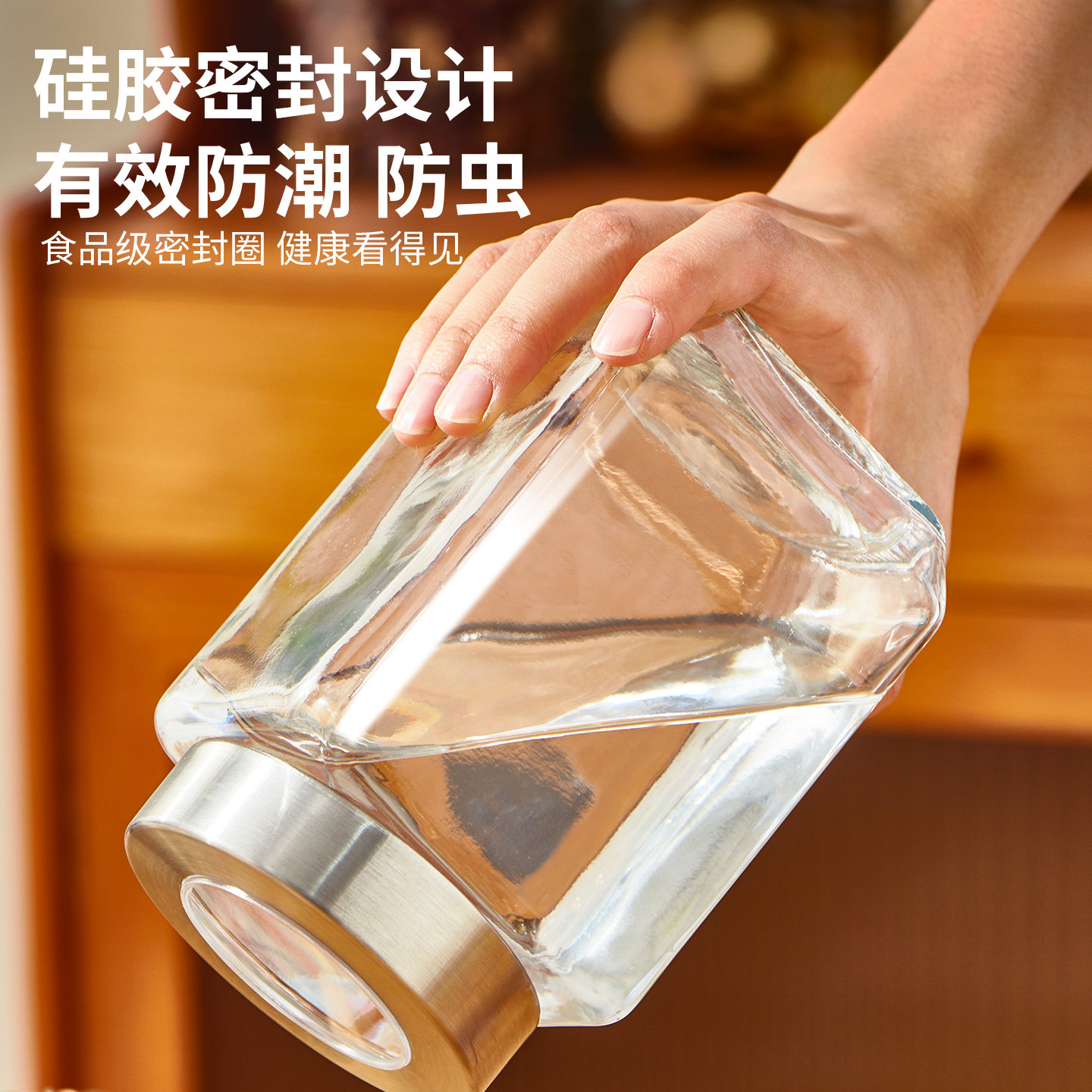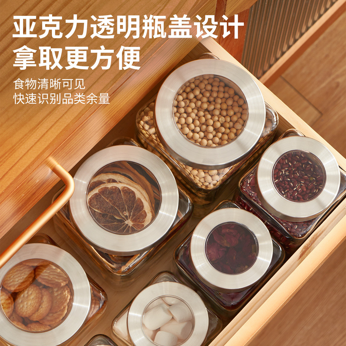 天安雅弹盖密封罐麦片杂粮大米淀粉面零食按压式收纳盒防潮尘食品级