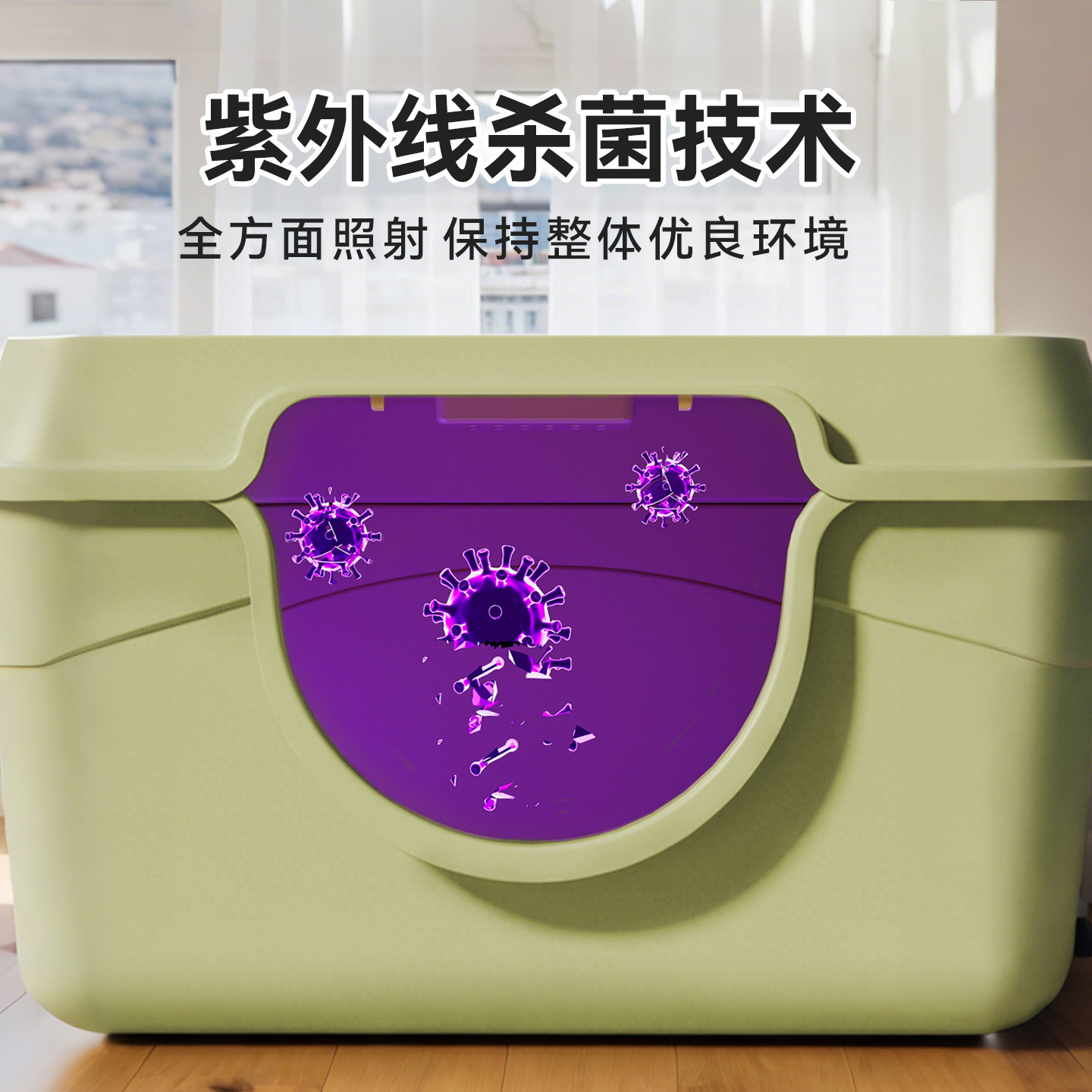 这款超大号全封闭式猫砂盆专为多猫家庭或大型猫咪设计,拥有宽敞的内部空间,让猫咪如厕更舒适自在。采用全封闭结构,有效防止猫砂外溅,减少带砂现象,保持家居整洁。顶部设有活性炭过滤层,强力吸附异味,持久保持空气清新。宽大入口设计,方便猫咪进出,尤其适合老年猫或行动不便的猫咪使用。底部加深防漏托盘,搭配防滑脚垫,稳固不易移位。整体采用环保耐用材质,易拆卸清洗,卫生便捷。无论是防臭、防溅还是防带砂,这款猫砂盆都能全方位满足需求,是提升猫咪如厕体验与家居环境的理想选择。