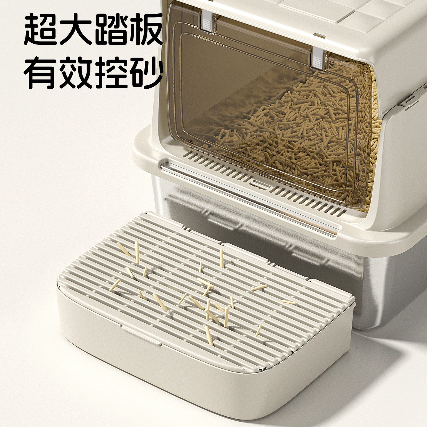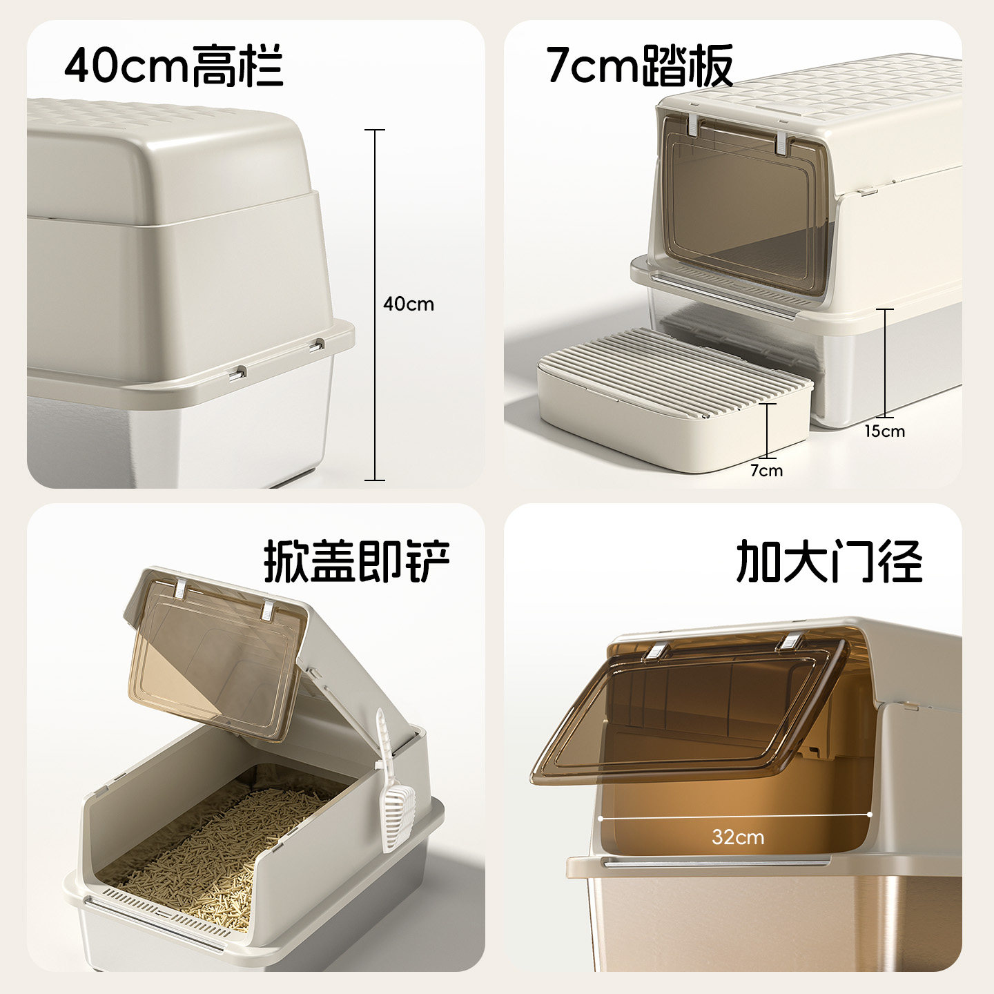 淘创格宝全封闭式不锈钢猫砂盆翻盖可拆卸清洗猫厕所防外溅猫屎盆