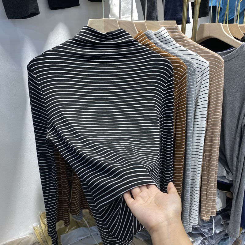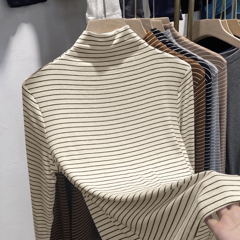 淘宝双面德绒条纹打底衫女秋冬季2025新款内搭加厚保暖长袖T恤女上衣
