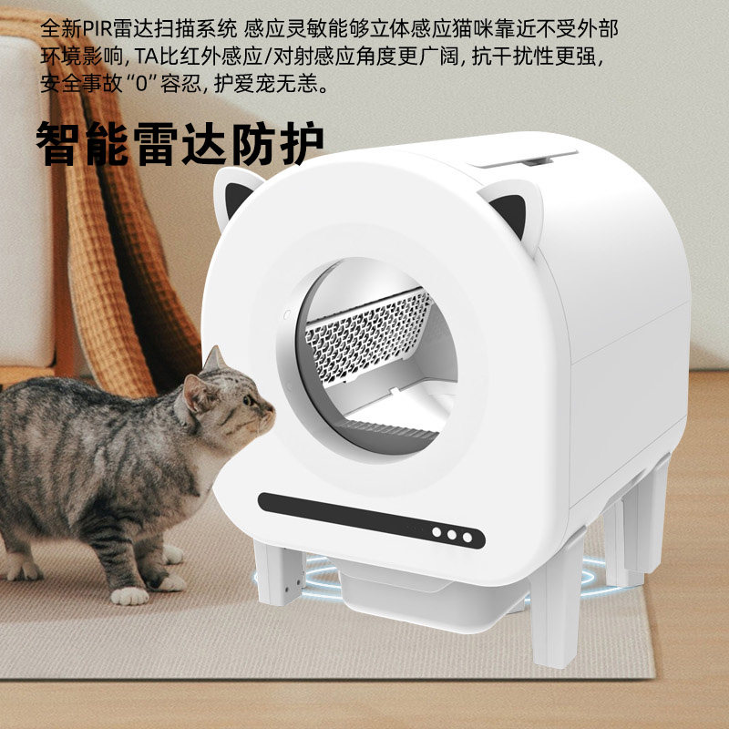这款全自动猫砂盆集智能科技与贴心设计于一体,采用封闭式超大空间设计,有效防止异味外泄,保障家居空气清新。配备强力除臭系统,结合活性炭过滤与UV杀菌,持久保持洁净环境。全电动智能清理机制,猫咪如厕后自动感应并迅速铲屎,无需手动干预。内置高清摄像头,支持手机远程实时查看猫咪状态,随时掌握爱宠动态。APP智能控制,可设置清理模式、查看使用记录,操作便捷。静音运行设计,不打扰猫咪与家人休息。适用于多猫家庭,是追求高效、卫生、智能养猫体验的理想选择。