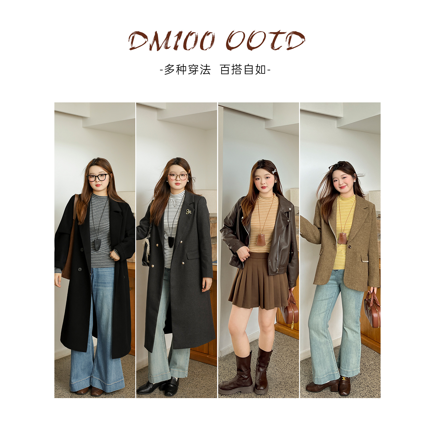 DM100大码百分百女装微胖mm冬季毛边大圆领正肩修身内搭T恤打底衫