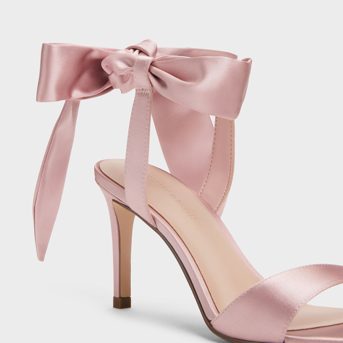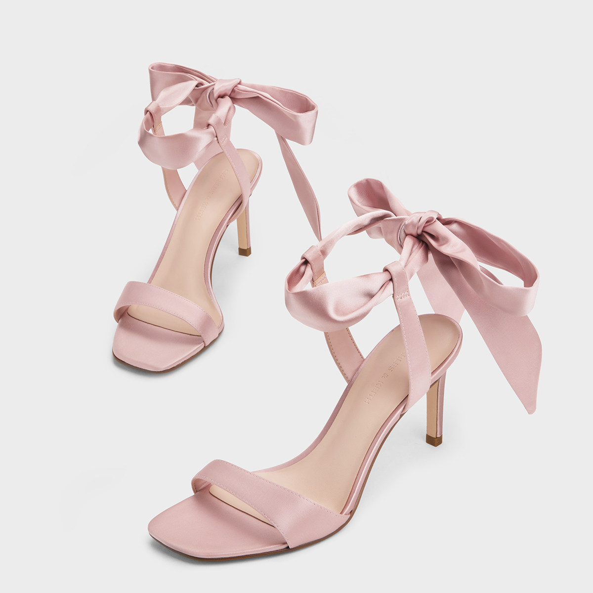 天猫CHARLES&KEITH春季女鞋CK1-61720177一字带缎面蝴蝶结绑带高跟鞋