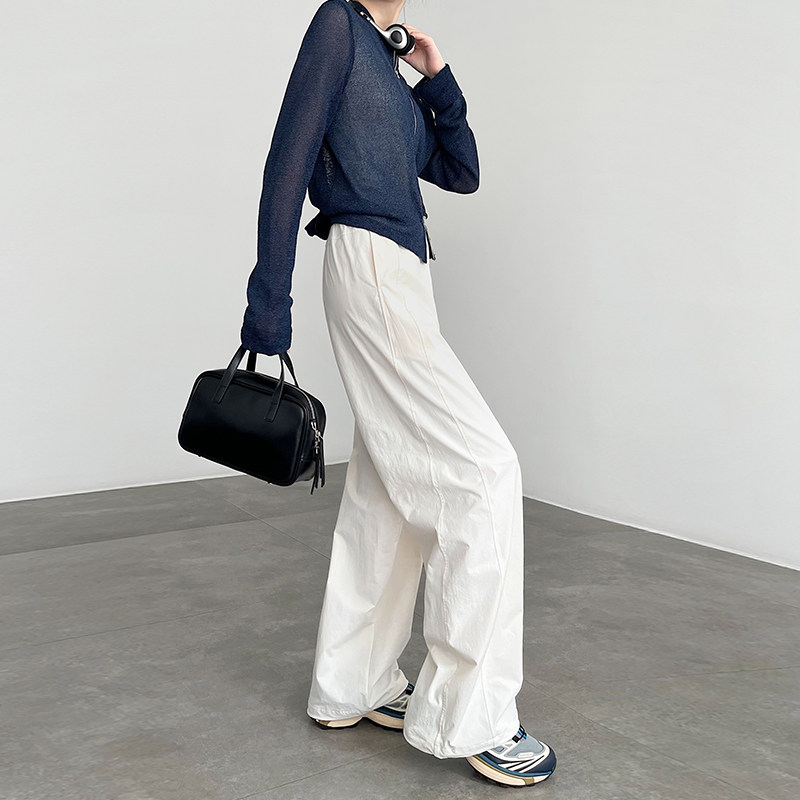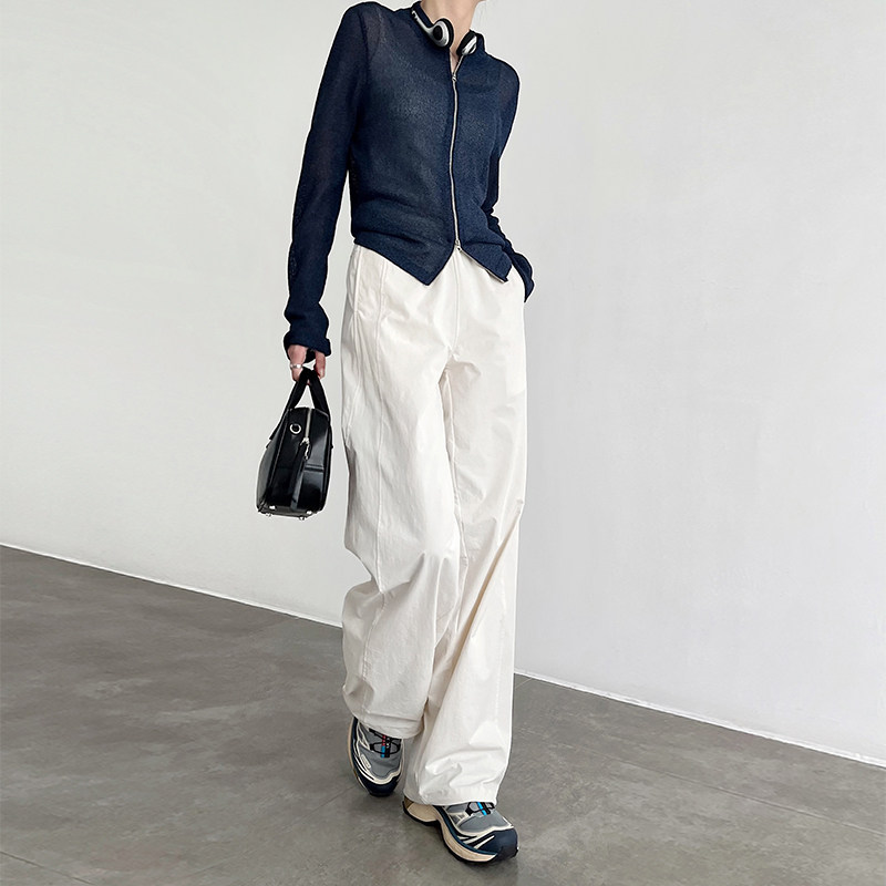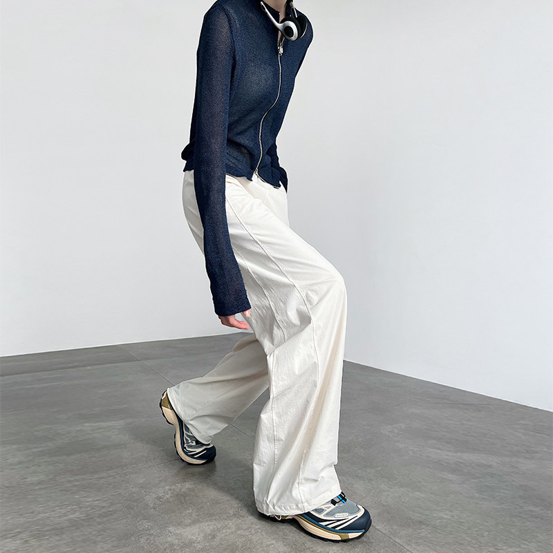 天猫白色伞兵裤女2025新款酷飒风山系速干束脚休闲宽松阔腿直筒工装裤