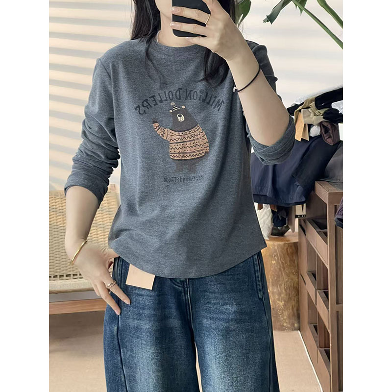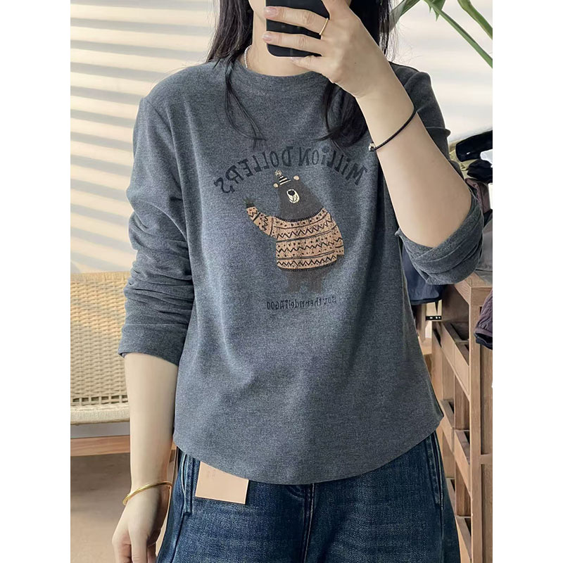 淘宝2025秋冬新款圆领加厚长袖T恤女宽松显瘦百搭休闲上衣-31092