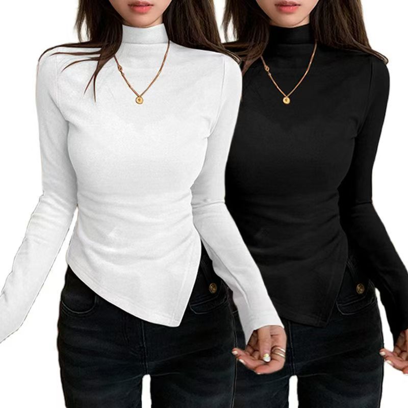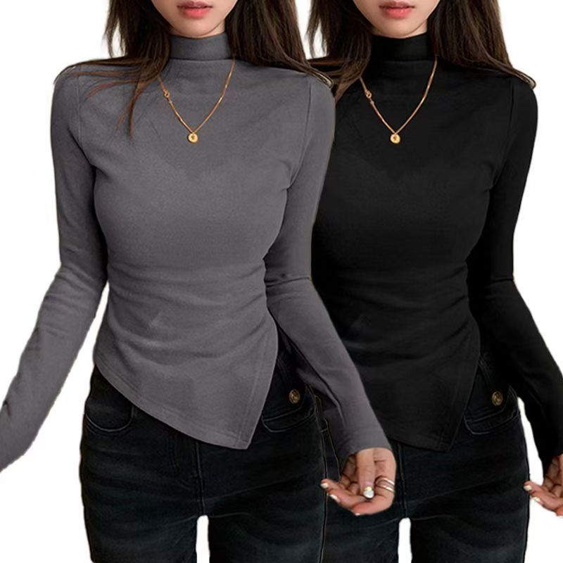 天猫德绒半高领打底女秋冬内搭不规则显瘦新款T恤辣妹长袖修身上衣服B