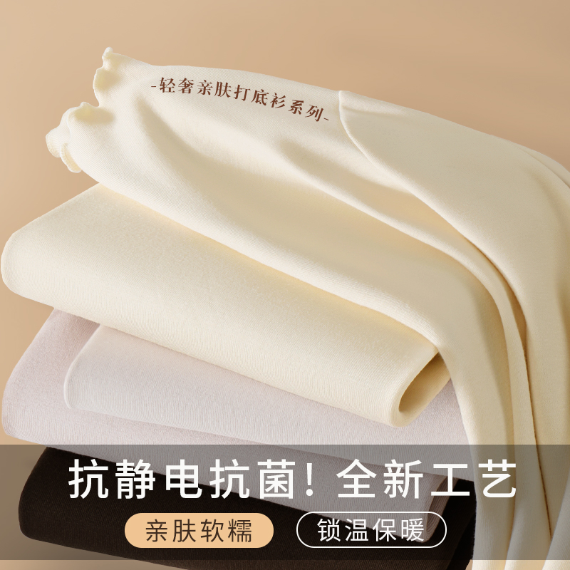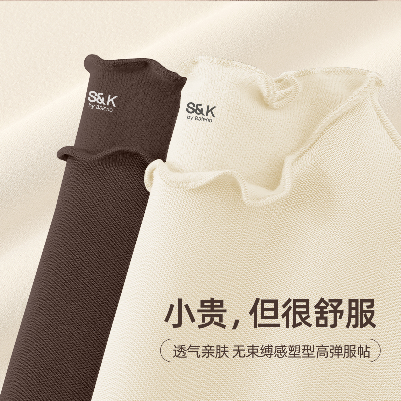 天猫班尼路S&k系列咖色荷叶边长袖t恤女2025秋冬新款内搭打底衫上衣H