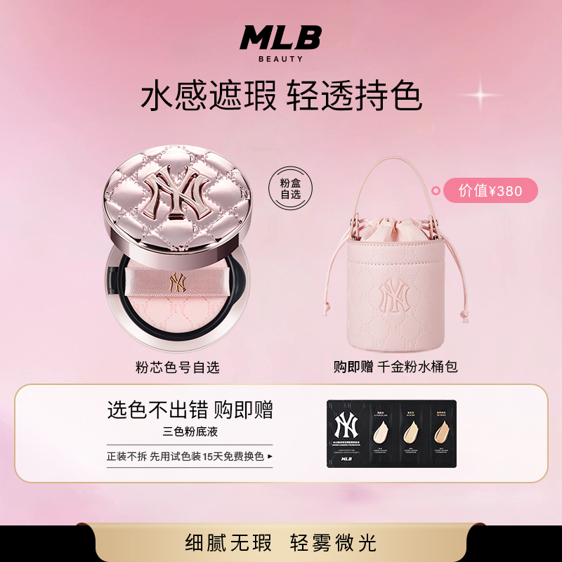 天猫【送水桶包】MLB鎏金粉气垫老花遮瑕粉底液正品BB霜持妆不易脱妆