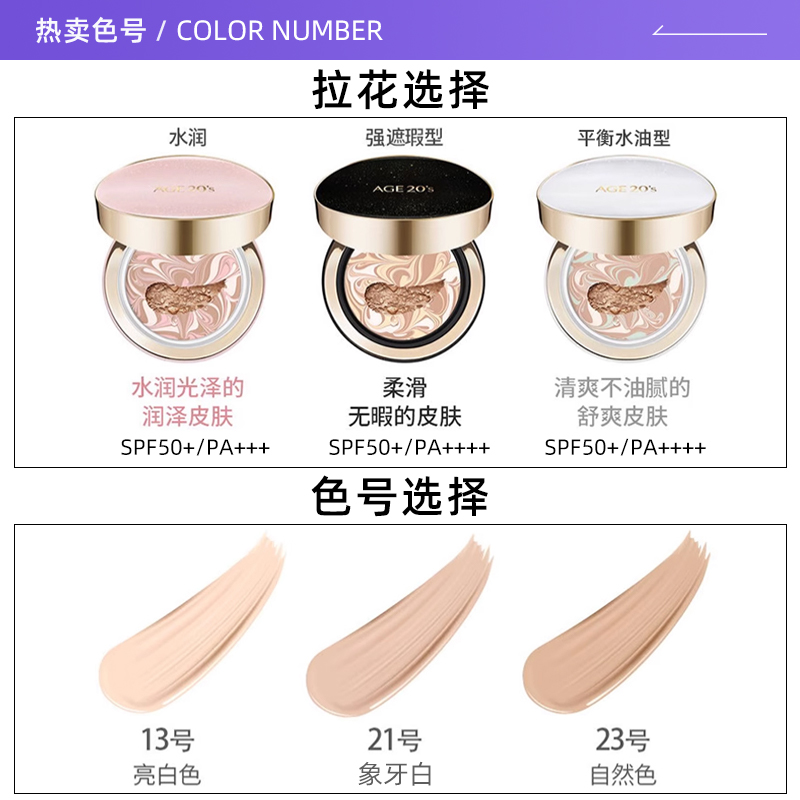 爱敬气垫遮瑕持久不脱妆age20s新款四色拉花官方正品黑金bb霜粉底