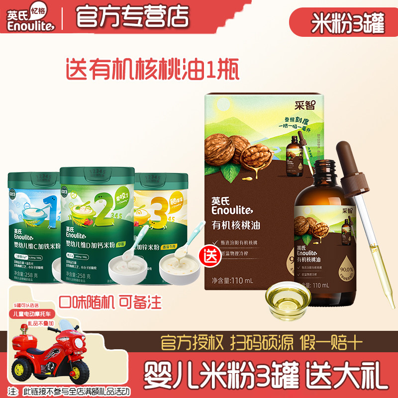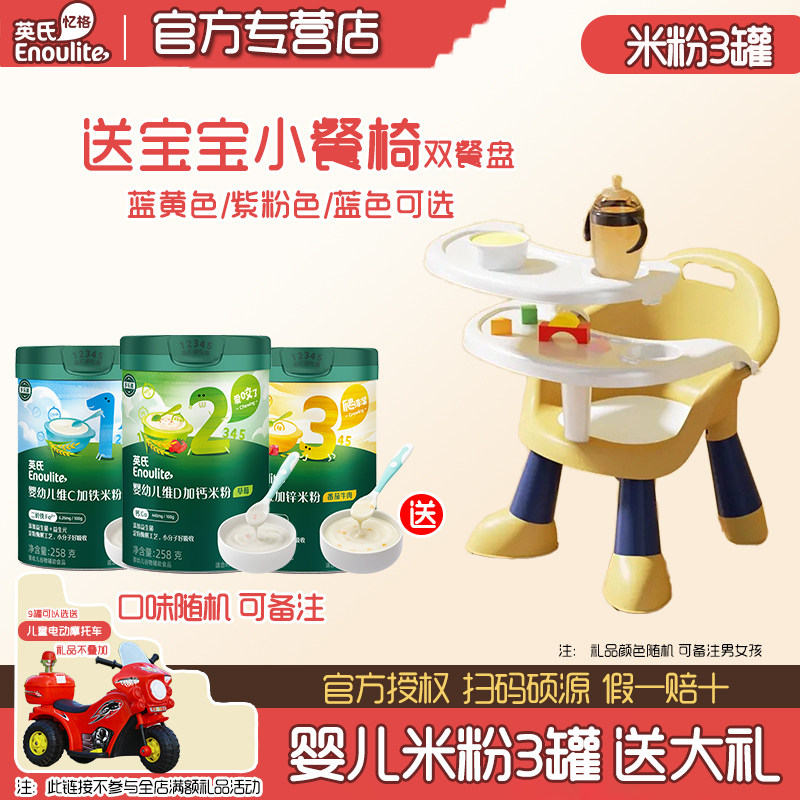 天猫30种赠品可选】英氏婴儿米粉3罐装高铁米糊粥1段3段米粉宝宝辅食