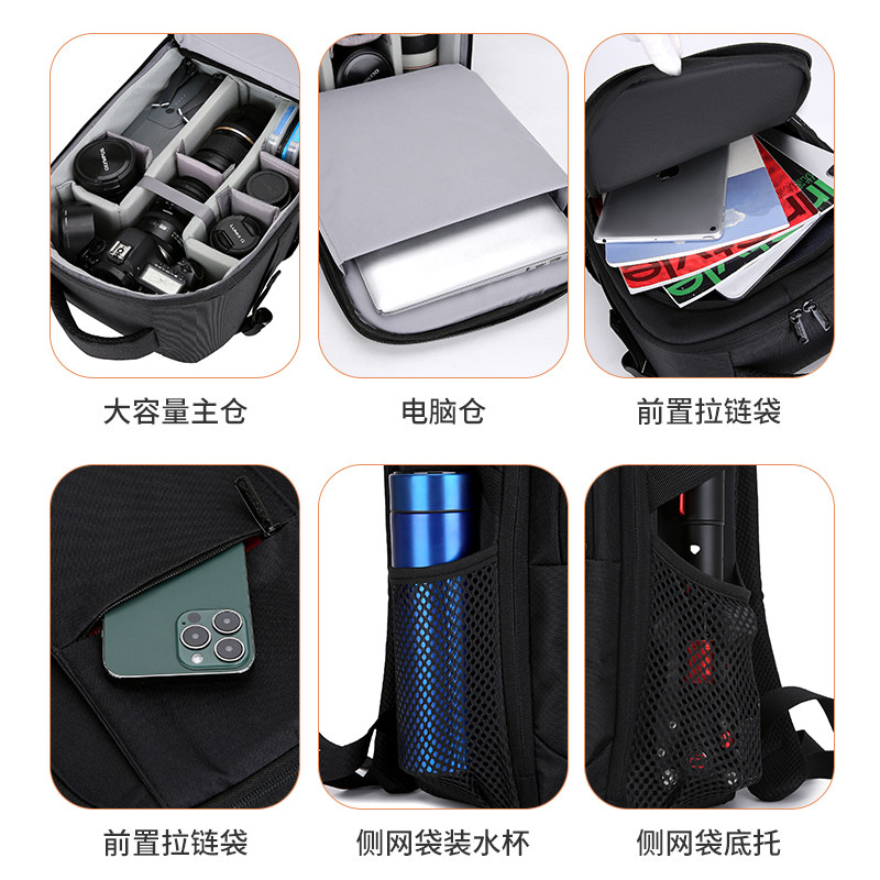这款大容量多功能双肩包专为摄影爱好者设计,兼容单反、微单相机及无人机设备,内部采用可调节隔板,灵活分区,保护器材安全。包体结构科学,设有专用16寸笔记本电脑仓、平板袋及多个收纳隔层,满足日常通勤与户外拍摄需求。背负系统舒适透气,加厚肩带与背部衬垫有效减压,适合长时间背负。防水耐磨面料,应对多变天气。简约时尚外观,男女通用,无论是城市街拍、旅行采风还是日常出行,都能轻松应对,是集专业性、实用性与美观性于一体的摄影背包首选。