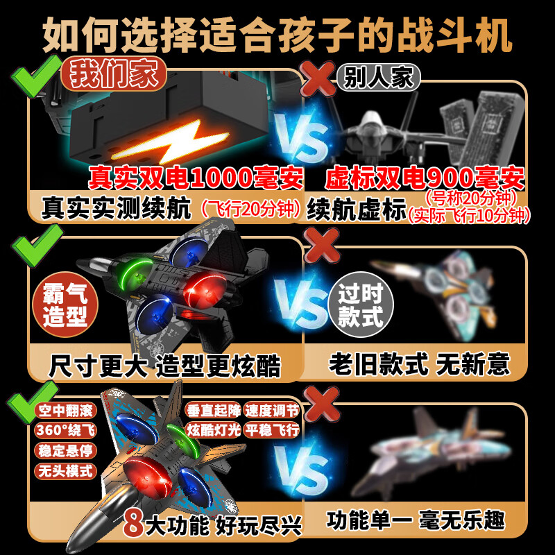 天猫遥控飞机儿童歼20战斗机模型玩具耐摔小学生无人机男孩女生日礼物