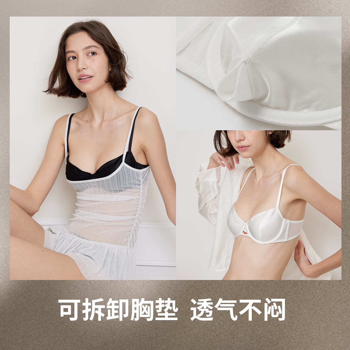 天猫弗利少女重磅真丝内衣法式文胸软钢圈桑蚕丝刺绣小胸胸罩套装薄款