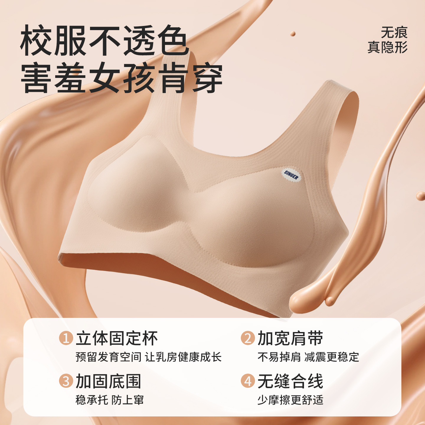 天猫婷美粉底液发育期隐形少女内衣二三阶初高中生防震女孩背心式文胸