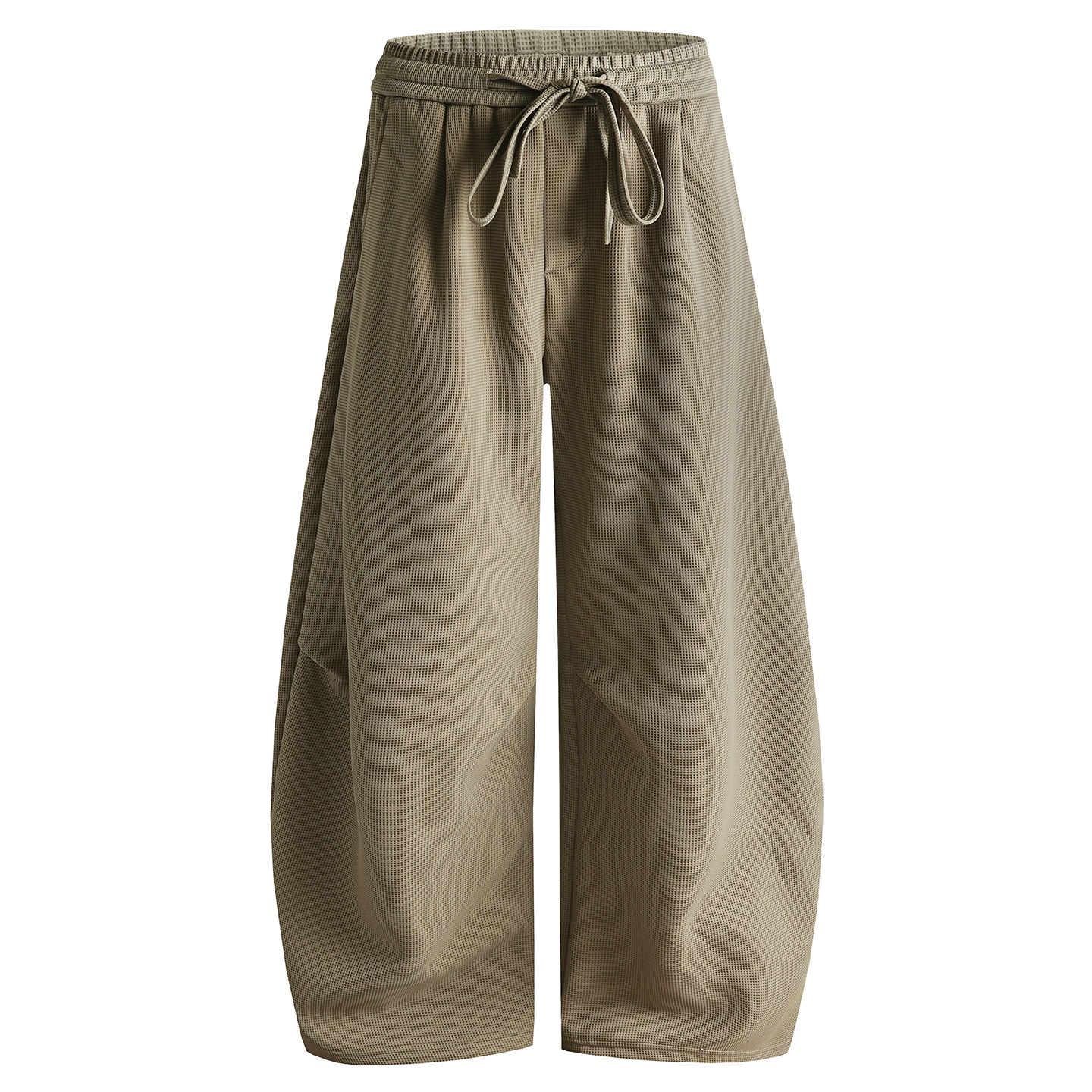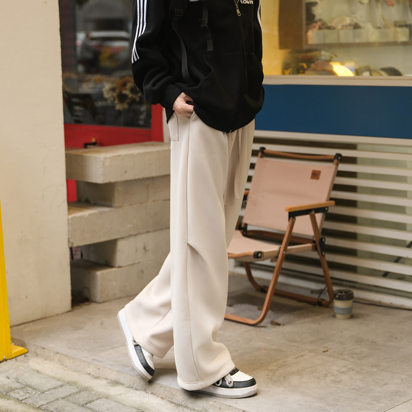淘宝@港仔文艺男 加绒加厚裤子男冬季华夫格休闲裤垂坠感宽松阔腿长裤