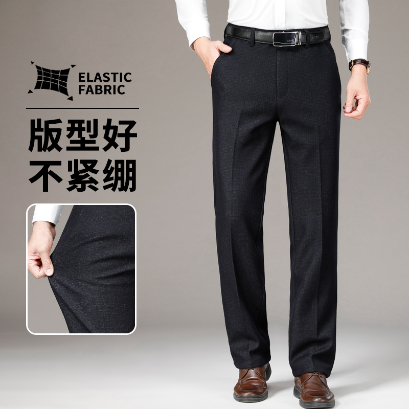 天猫罗蒙爸爸装裤子秋冬季加厚西裤男士中老年男裤宽松直筒加绒休闲裤