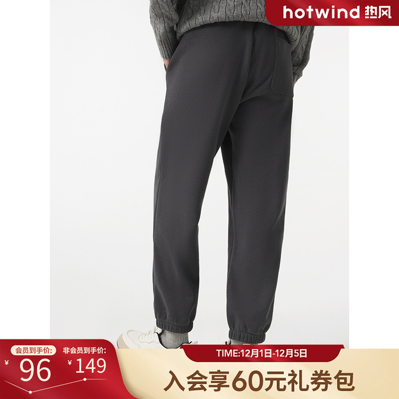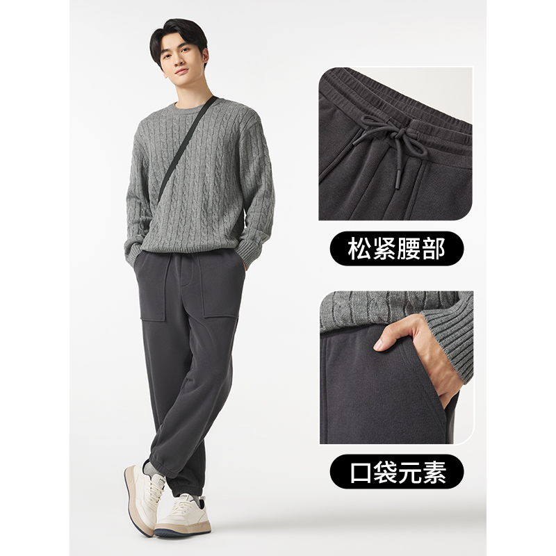 天猫热风冬季新款男士气质舒适通勤简约修身显瘦款休闲加绒卫裤