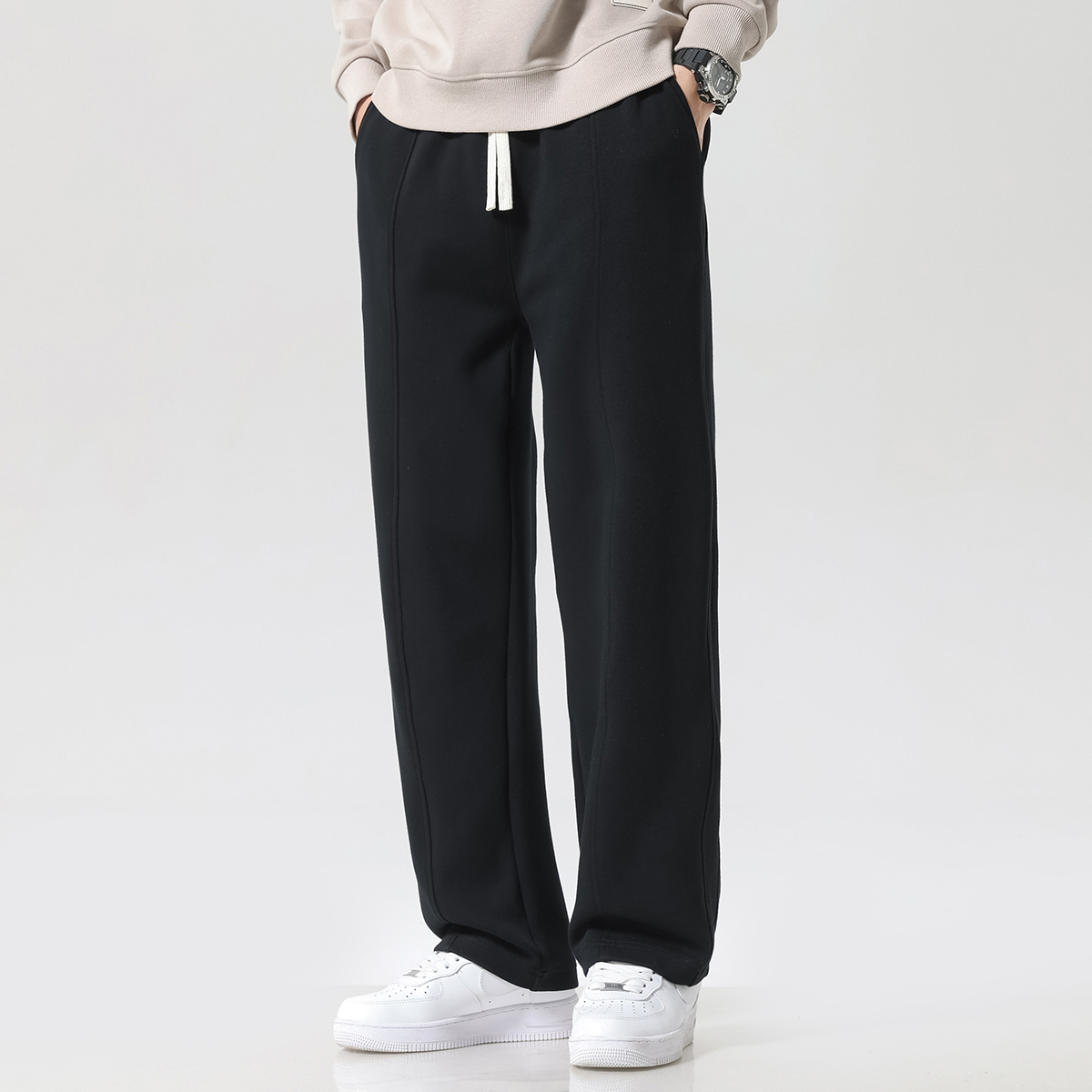 天港风宽松撞色百搭直筒休闲裤男oversize秋冬季新款加绒保暖长裤子