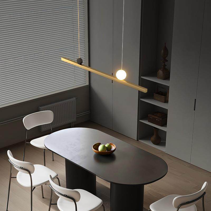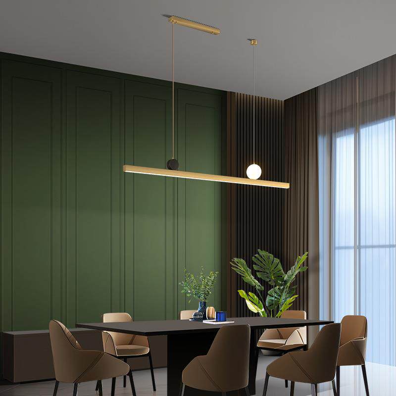 这款设计师高级餐厅吊灯,专为现代简约空间打造,采用优质全铜材质,经精工打磨与抗氧化处理,质感温润且经久耐用。其一字长条形设计,线条利落流畅,完美契合长条餐桌、吧台或前台区域,营造极简而高级的视觉焦点。灯光柔和均匀,支持多档调光,适配不同氛围需求。无论是高端餐厅、精品酒店还是现代家居,都能彰显不凡品味。安装便捷,结构稳固,兼具艺术美感与实用功能,是现代极简风格空间中不可或缺的点睛之笔。