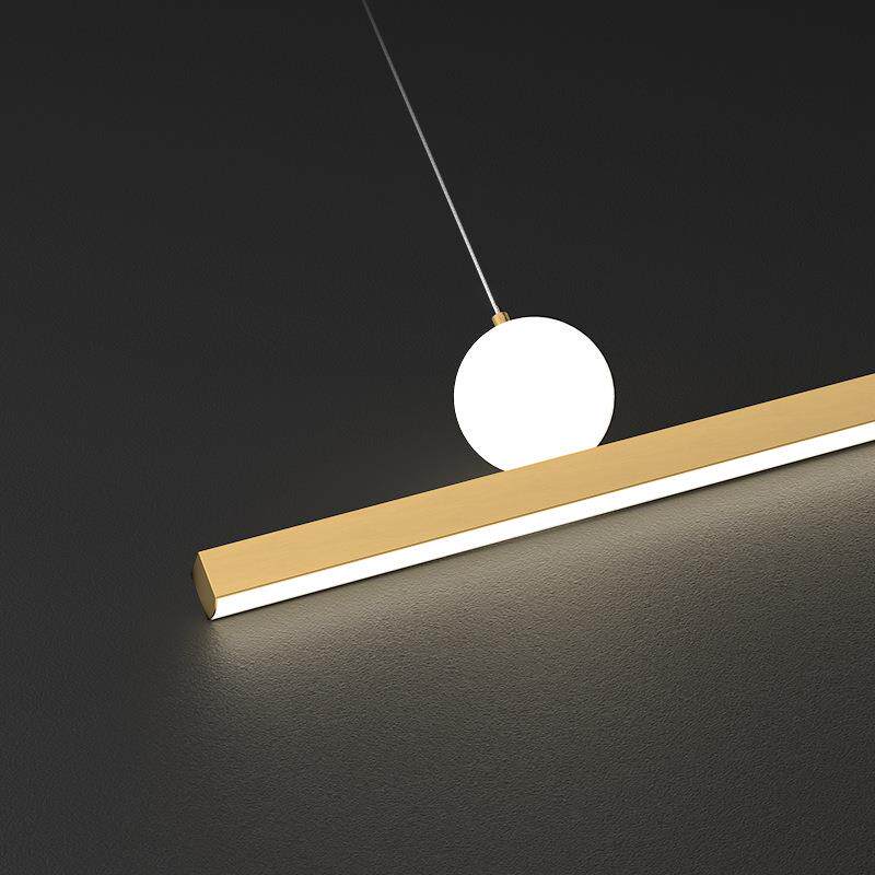 淘宝设计师高级餐厅吊灯现代简约一字长条餐桌吧台灯极简全铜前台灯具