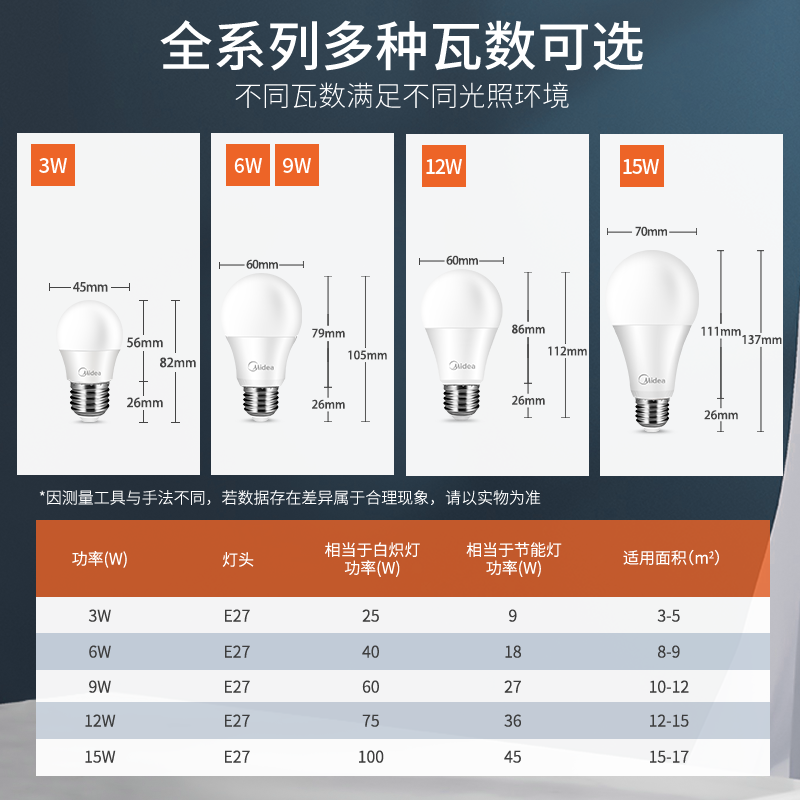 天猫美的led灯泡e27超亮螺口照明灯节能强光家用吊灯电灯台灯耐用