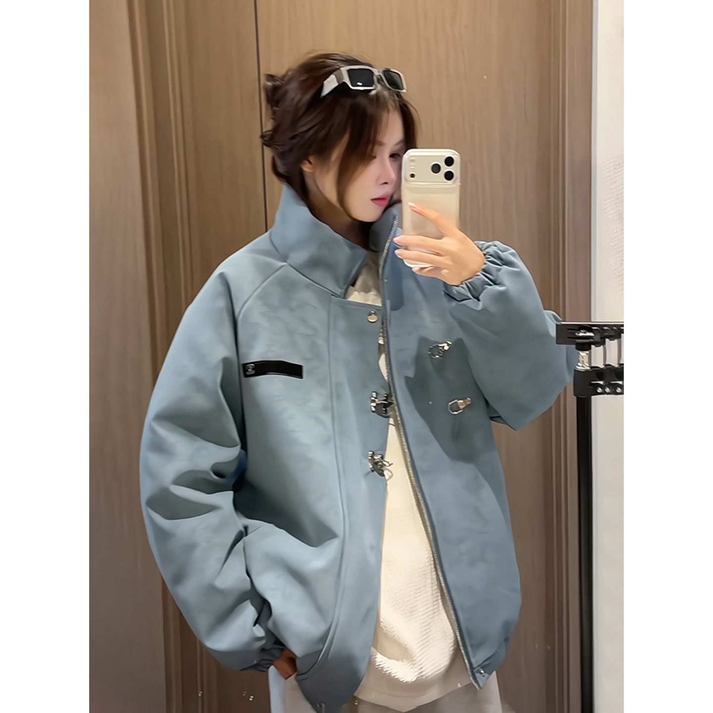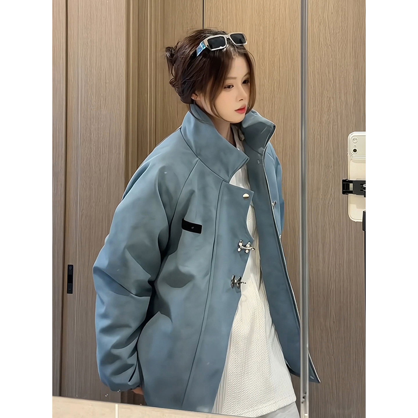 这是一款冬季时尚之选,哑光蓝扎染皮衣棉服外套。男女均可穿着,美式短款设计尽显时尚气息。飞行夹克风格赋予你自由和动感,立领设计在冬季提供额外温暖保护。夹棉材质提供舒适的穿着体验,既保暖又透气。棒球服风格的外观更是时尚与实用的完美结合。这款外套是你冬季衣橱必备单品,无论是休闲出行还是户外探险,都能让你展现独特个性风格。尽享冬日温暖与时尚魅力。