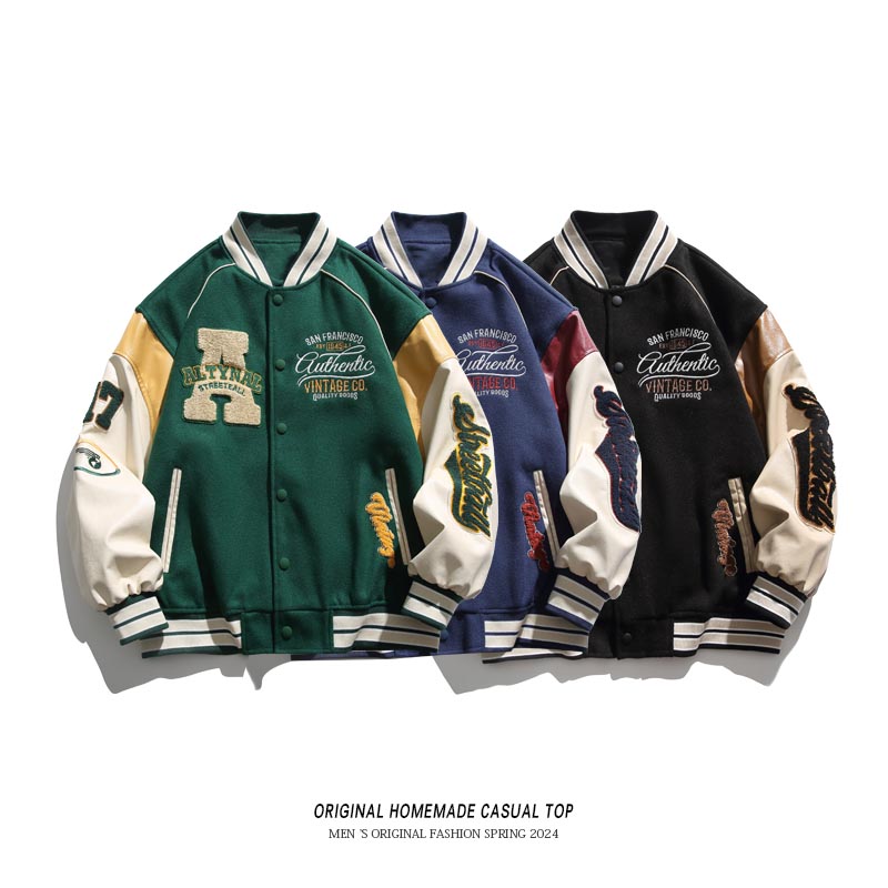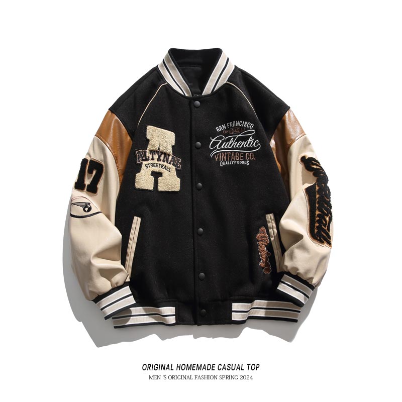 淘宝国潮拼接棒球服男春秋季刺绣夹克男街头宽松棒球领情侣款休闲外套