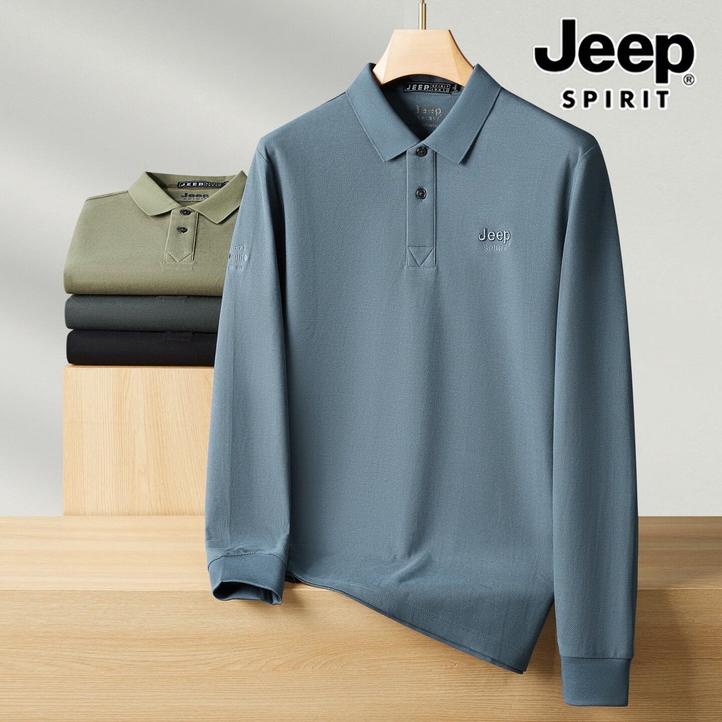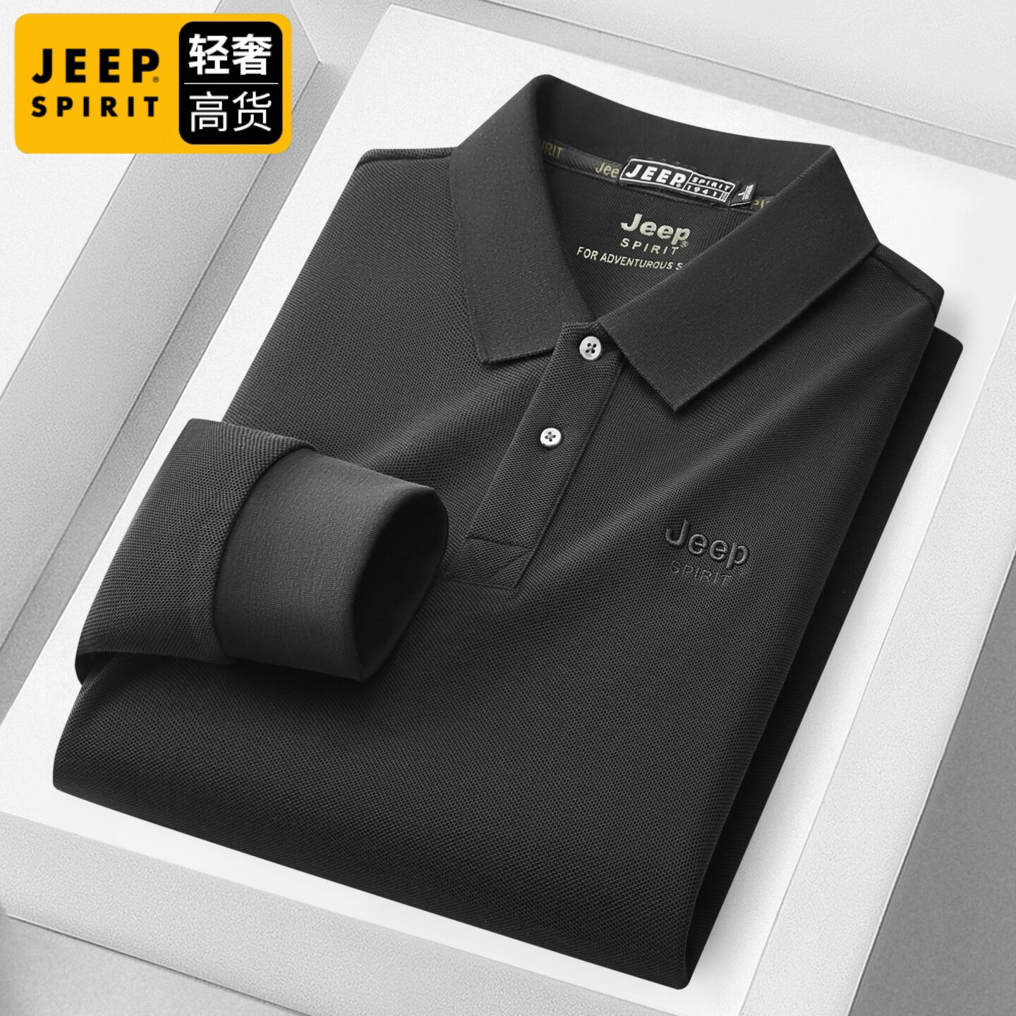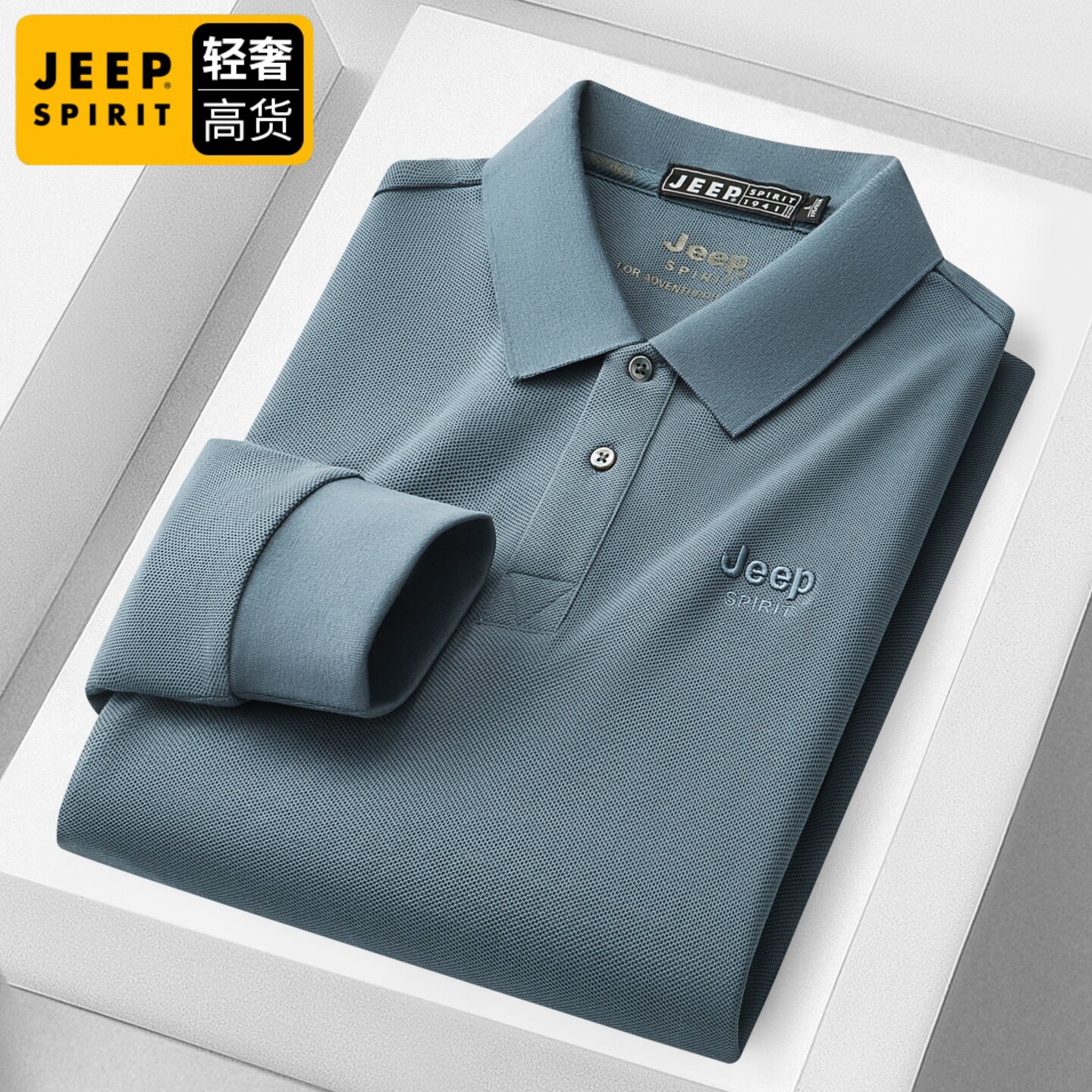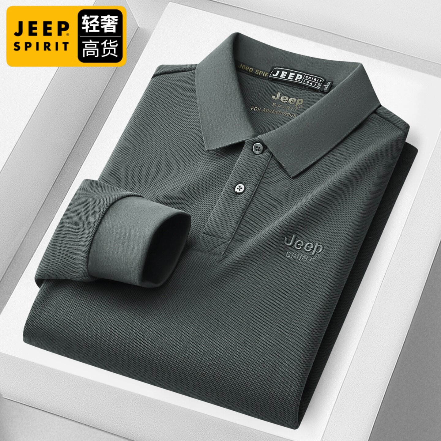 淘宝吉普纯棉长袖POLO衫男士秋季爸爸男装丝光棉上衣中年休闲翻领t恤