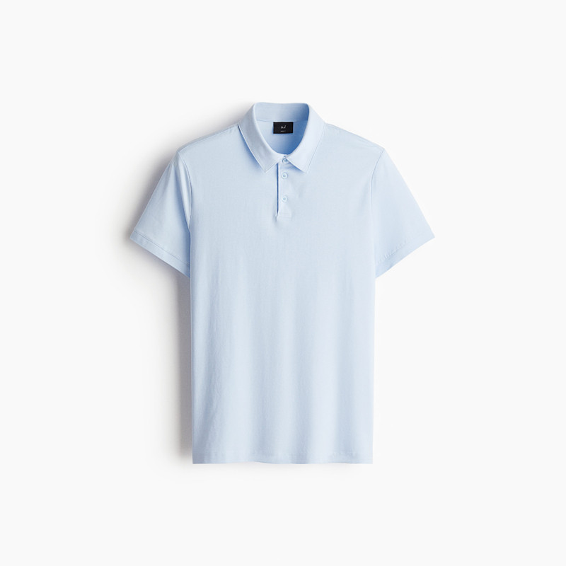 天猫HM男装Polo衫薄款正肩商务通勤风翻领时尚休闲短袖上衣0956343