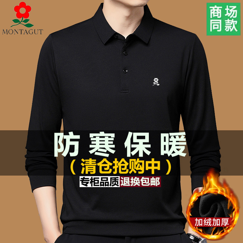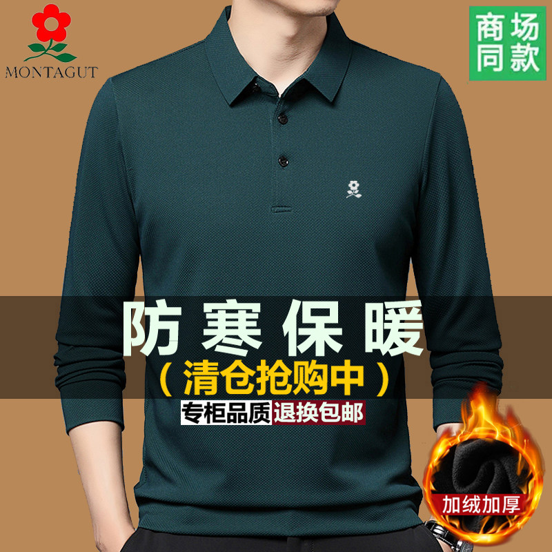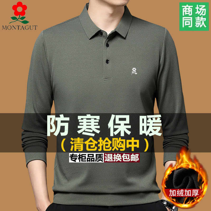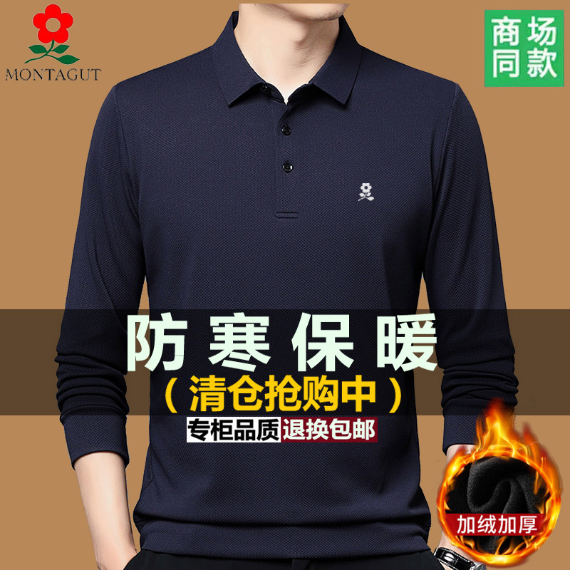 淘宝梦特娇冬季中老年保暖内衣男士加绒加厚翻领polo衫长袖T恤打底衫