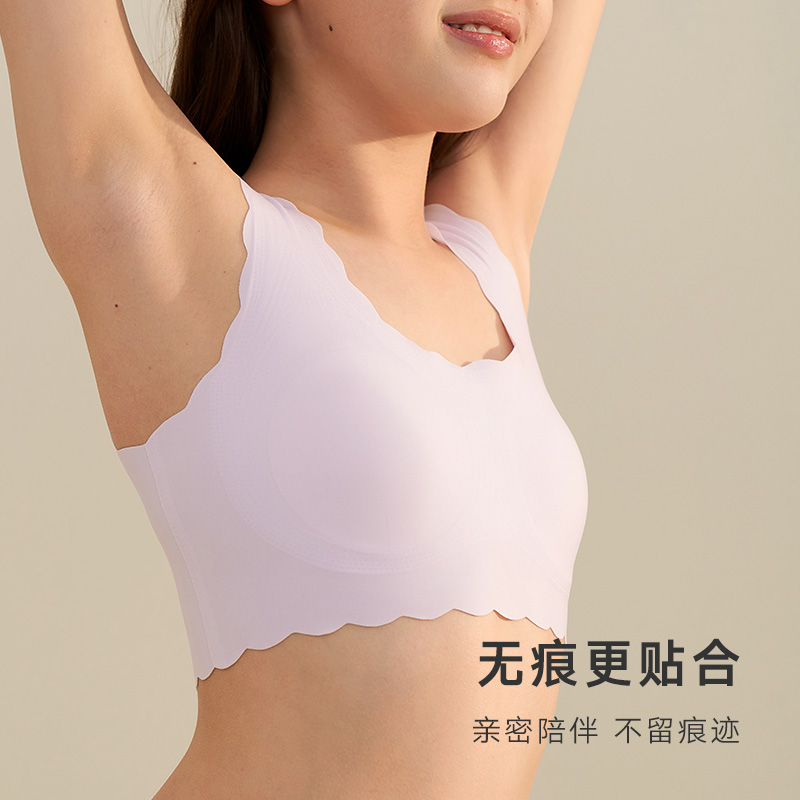 新款无痕一片式内衣舒适背心细肩带固定杯垫防走光少女美背文胸
