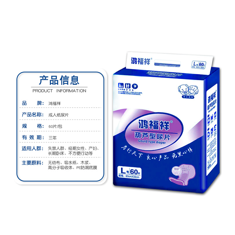 淘宝鸿福祥成人纸尿片加大号蝴蝶片老人用尿不湿男女止尿垫葫芦型60片