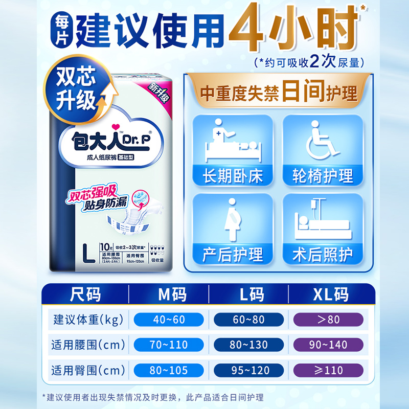 包大人成人纸尿裤是一款专为成人设计的护理用品,适用于老人、产妇及大小便失禁人群。这款纸尿裤含有80片,每片都有卓越的吸水性能,能够全面护理肌肤,保持干燥舒适。对于无法自主控制排泄的人群,这款纸尿片是理想的护理选择。它具有超薄设计和柔软材质,方便穿戴且舒适度高,同时防止尴尬情况的发生。无论是家用还是外出旅行,包大人成人纸尿裤都是您贴心的护理伴侣。