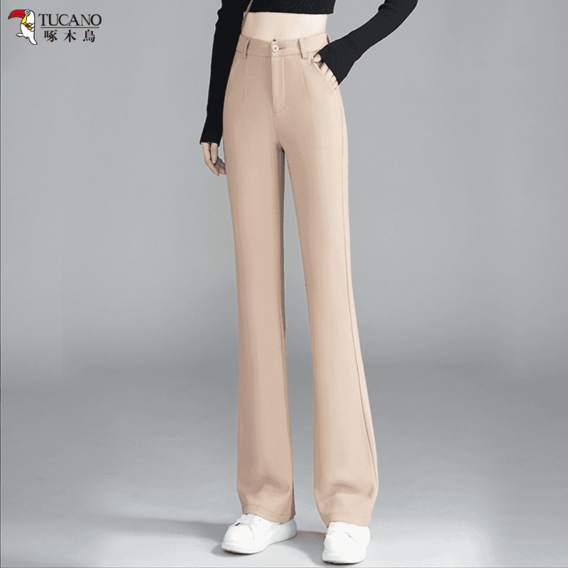 淘宝啄木鸟微喇裤女秋冬季2025新款女裤高腰显瘦弹力喇叭加绒休闲西裤
