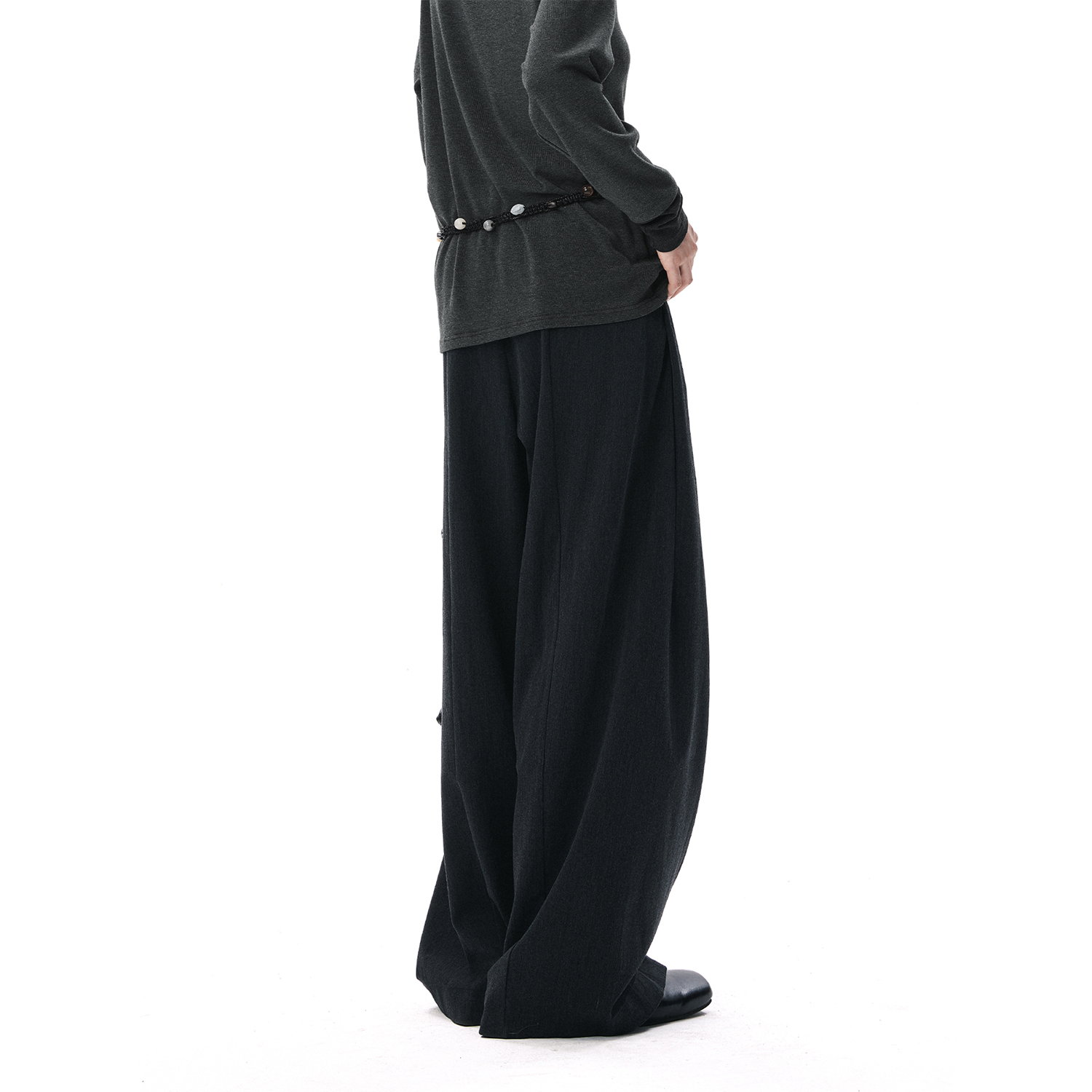 叠褶腰贴西裤女初春百搭阔腿垂感拖地裤宽松灰色休闲长裤AFM定制