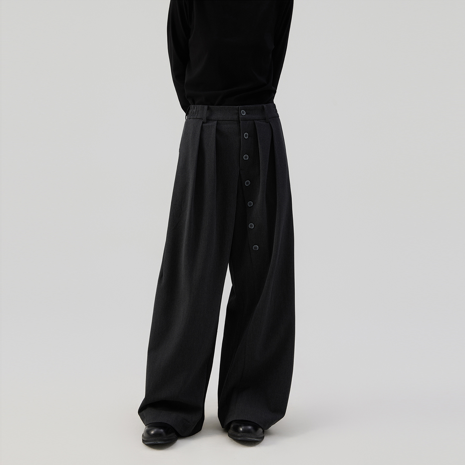 淘宝sameuoo散养文化「隐构」排扣设计灰色休闲裤女秋冬宽松中性西裤