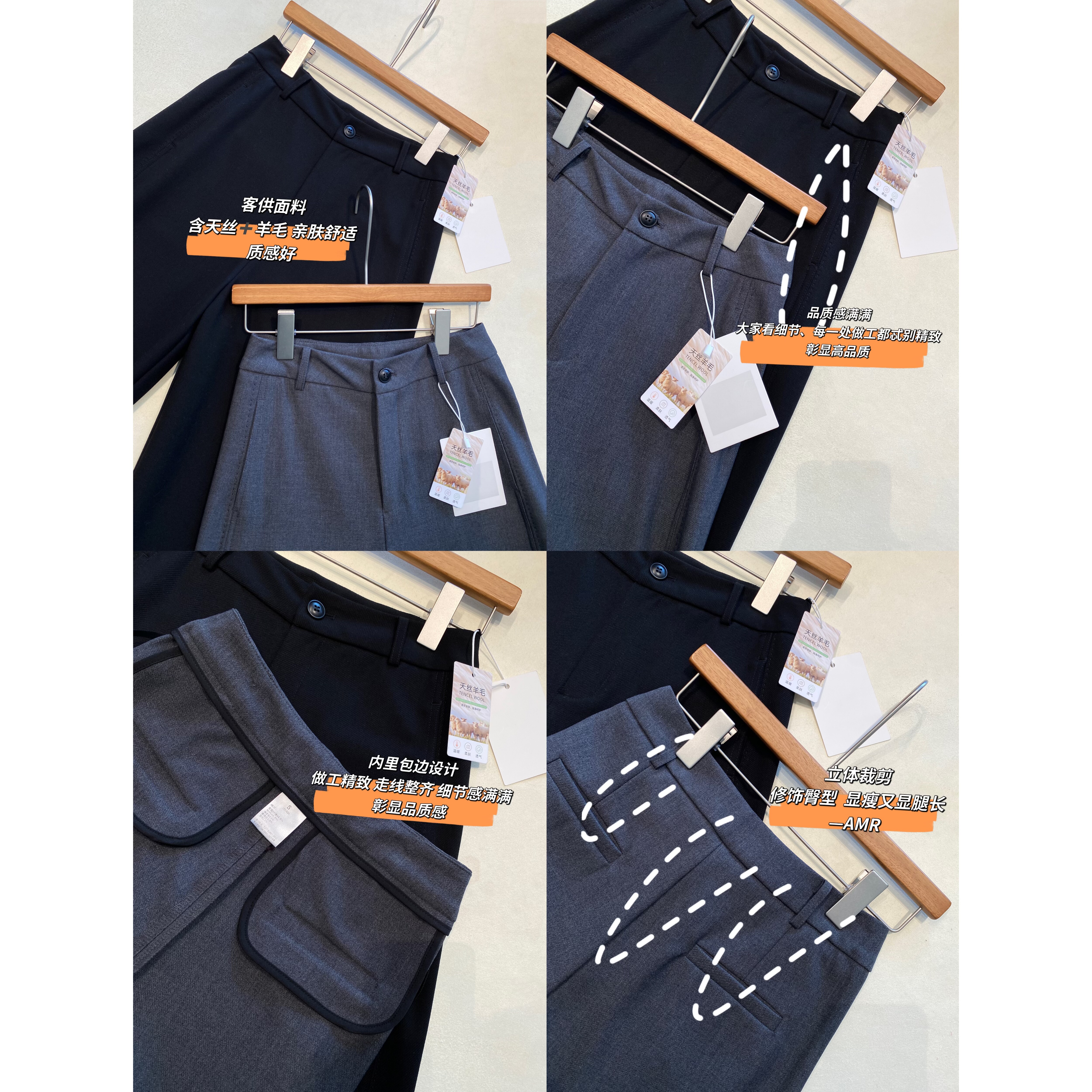 AMRUU新款秋冬女裤,时尚优雅又修饰腿型。采用含天丝羊毛材质,质感柔软舒适且保暖性极佳。高腰设计显瘦显高,轻松塑造完美身材比例。直筒阔腿造型,优雅大方,尽显女性魅力。无论是日常穿搭还是正式场合,这款西裤都是你的理想选择。新款上市,引领秋冬时尚潮流,让你轻松展现时尚态度与个人风格。