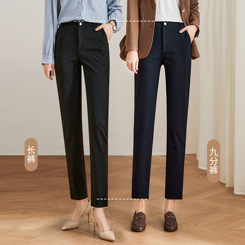 淘工作服西裤女工装制服职业西装藏青蓝黑色直筒春秋银行裤子工作裤