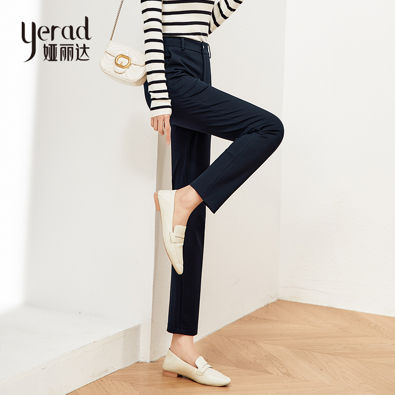 天猫娅丽达新款早八通勤直筒裤女秋冬款窄版女裤子黑色西装裤休闲西裤