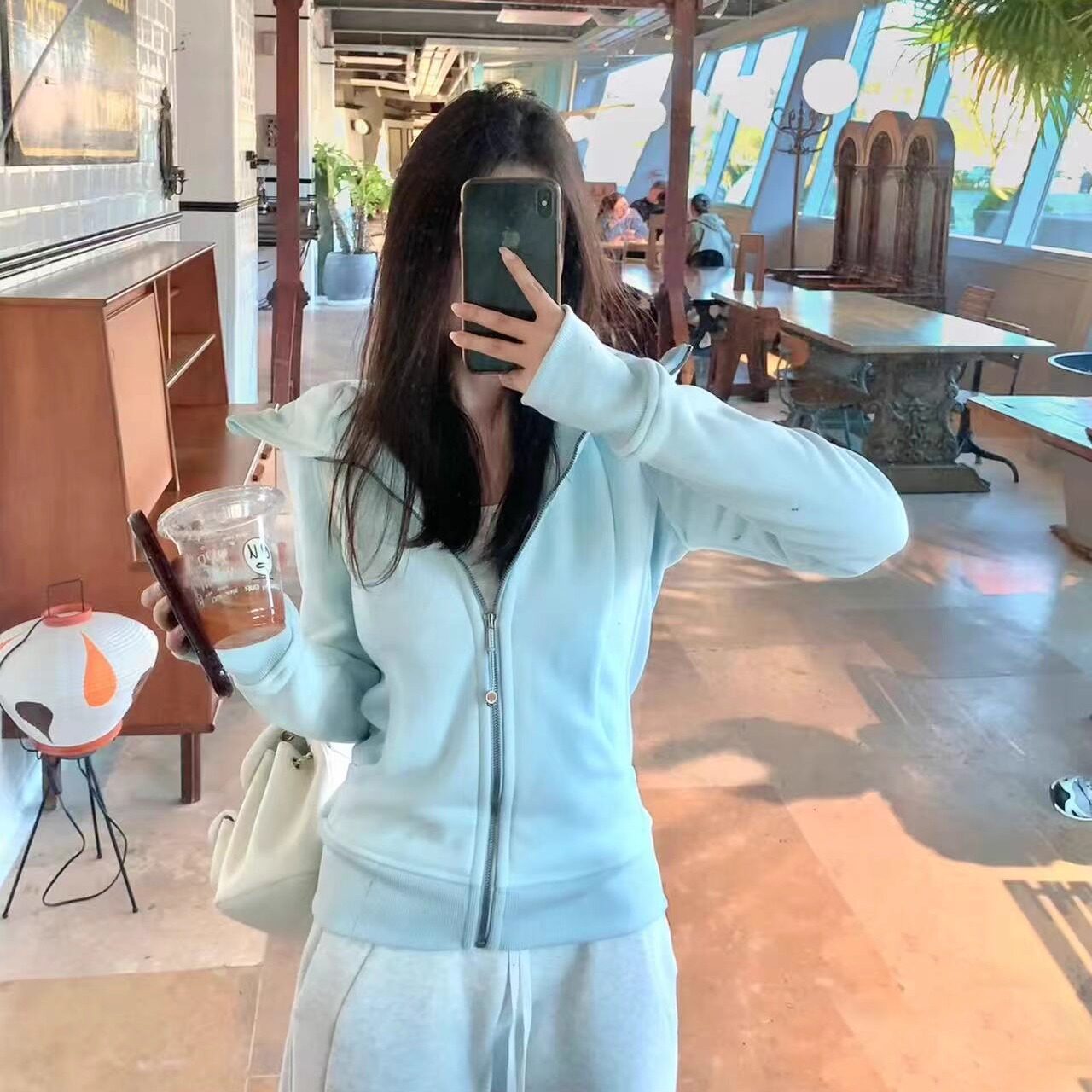 【AAADxLABELHOOD】蕾虎氧气绒撞色连帽拉链卫衣百搭秋冬气质女装