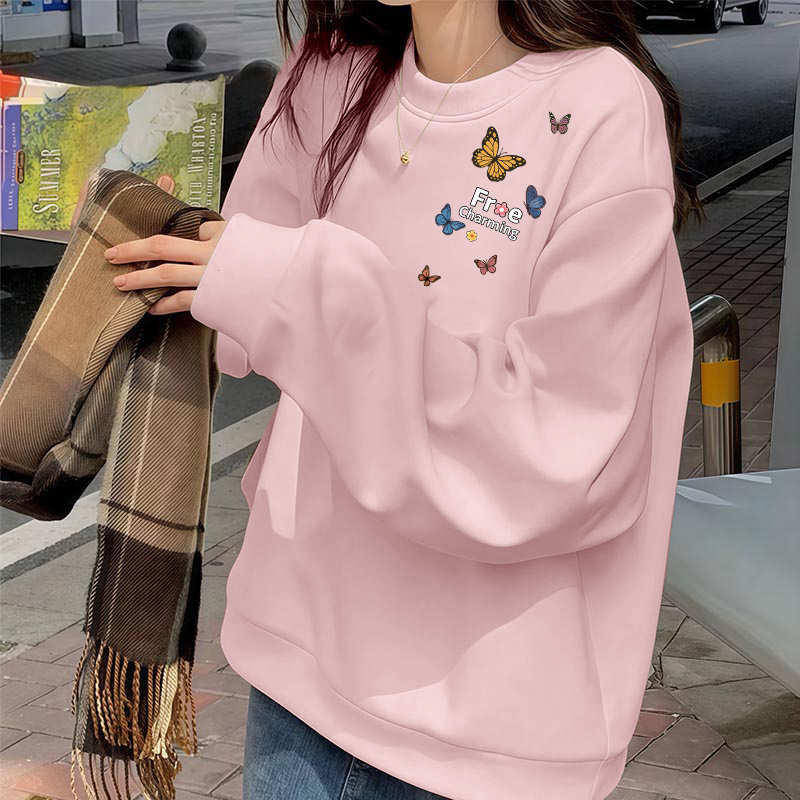 天猫JR真维斯杏色卫衣女春秋2025新款气质早秋女装圆领宽松小个子上衣